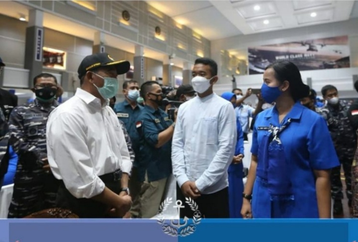 Gubernur Akademi Angkatan Laut (AAL) Laksda TNI Tunggul Suropati, S.E.,M.Tr (Han) mendampingi Wakil Kepala Staf Angkatan Laut, Laksamana Madya TNI Ahmadi Heri Purwono, S.E., M.M., menerima kunjungan Menteri Koordinator Pembangunan Manusia dan Kebudayaan Indonesia (Menko PMK) Prof. Dr. Muhajir Effendy, M.A.P. dan Menteri Sosial Tri Rismaharini mengunjungi keluarga KRI Nanggala-402, Minggu (25/4).