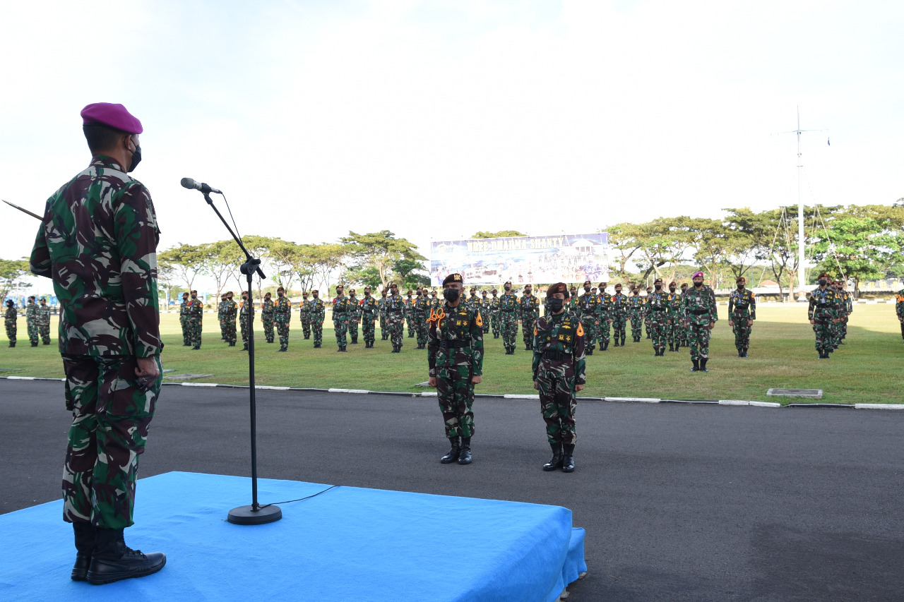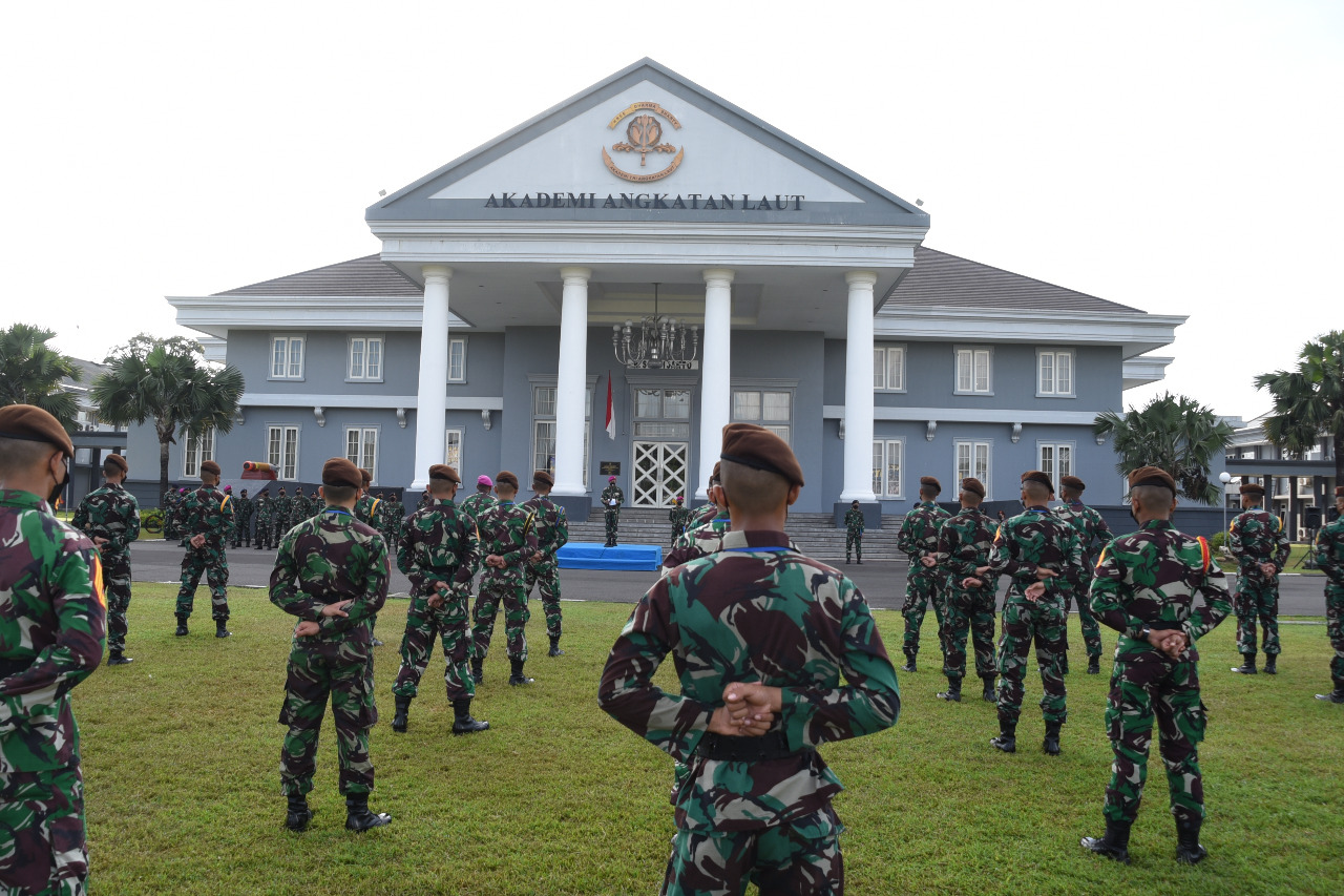 Gubernur Akademi Angkatan Laut (AAL) Mayor Jenderal TNI (Mar) Nur Alamsyah, S.E., M.M., M.Tr (Han) melepas Latihan Praktek (Lattek) Jalayudha 107 Taruna AAL Tingkat lll Angkatan ke-67 untuk mengikuti Manuver Lapangan (Manlap) latihan puncak TNI AL, Armada Jaya ke-39 tahun 2021, Kamis (24/6).