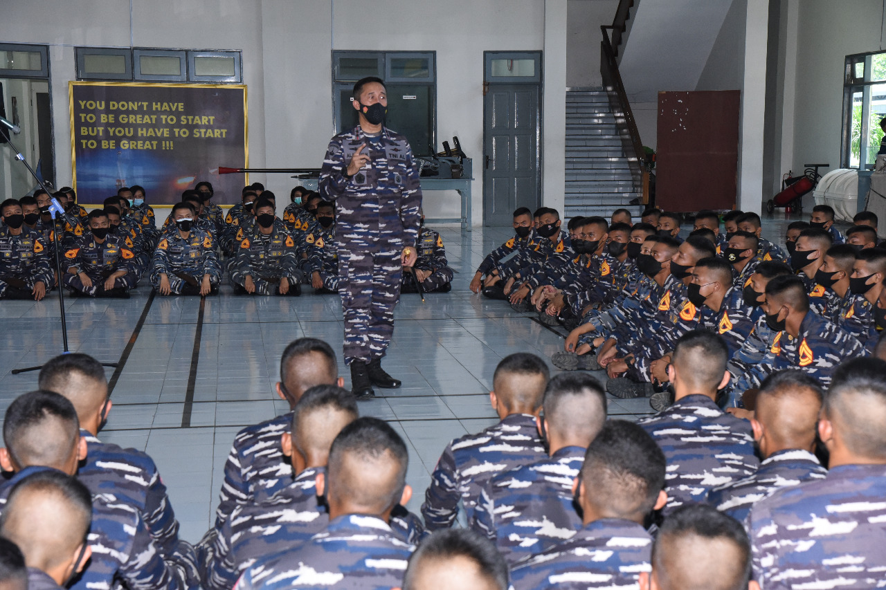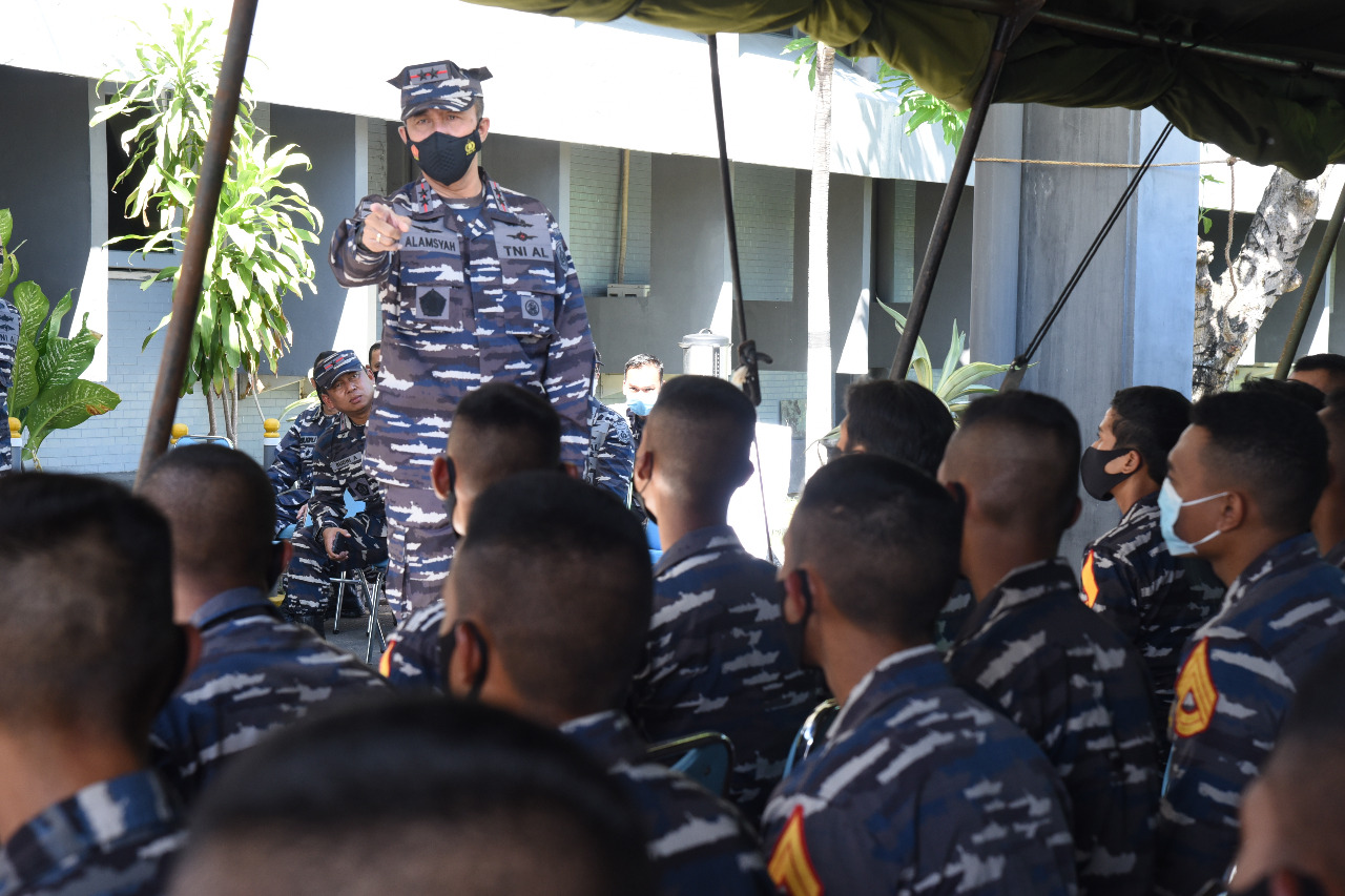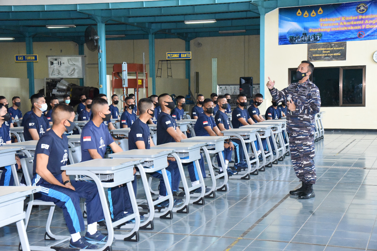 Gubernur Akademi Angkatan Laut (AAL), Mayor Jenderal TNI (Mar) Nur Alamsyah, S.E., M.M., M.Tr (Han) safari memberikan pembekalan dan arahan kepada Taruna AAL yang tengah melaksanakan Jam Pengasuhan di tiap-tiap Departemen Program Pendidikan, di Kesatrian AAL, Bumimoro, Surabaya, Jumat (14/5).