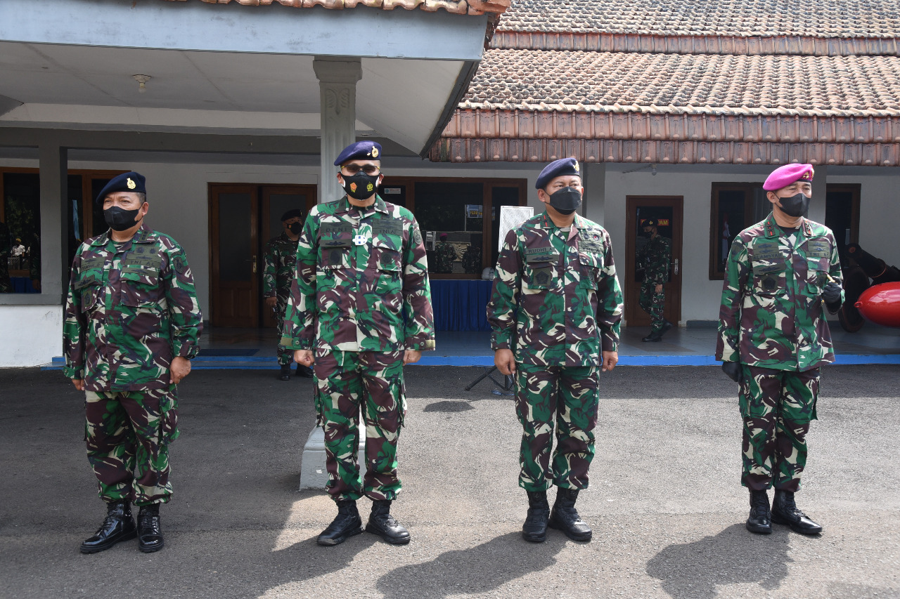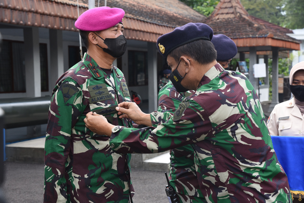 Gubernur Akademi Angkatan Laut (AAL) Mayor Jenderal TNI (Mar) Nur Alamsyah, S.E., M.M., M.Tr (Han) menerima Brevet Kehormatan Arsenal yang disematkan oleh Kepala Arsenal Kolonel Laut (E) Sigit Amianto, S.T., M.M., di lapangan Arsenal Batuporon Madura, Selasa (15/6).