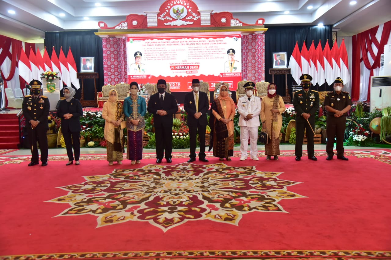 Bertempat di gedung Griya Agung Palembang, Gubernur Sumatera Selatan H. Herman Deru, resmi melantik dan mengambil sumpah Bupati dan Wakil Bupati OKU Pilkada Serentak Tahun 2020 (26/02/2021).