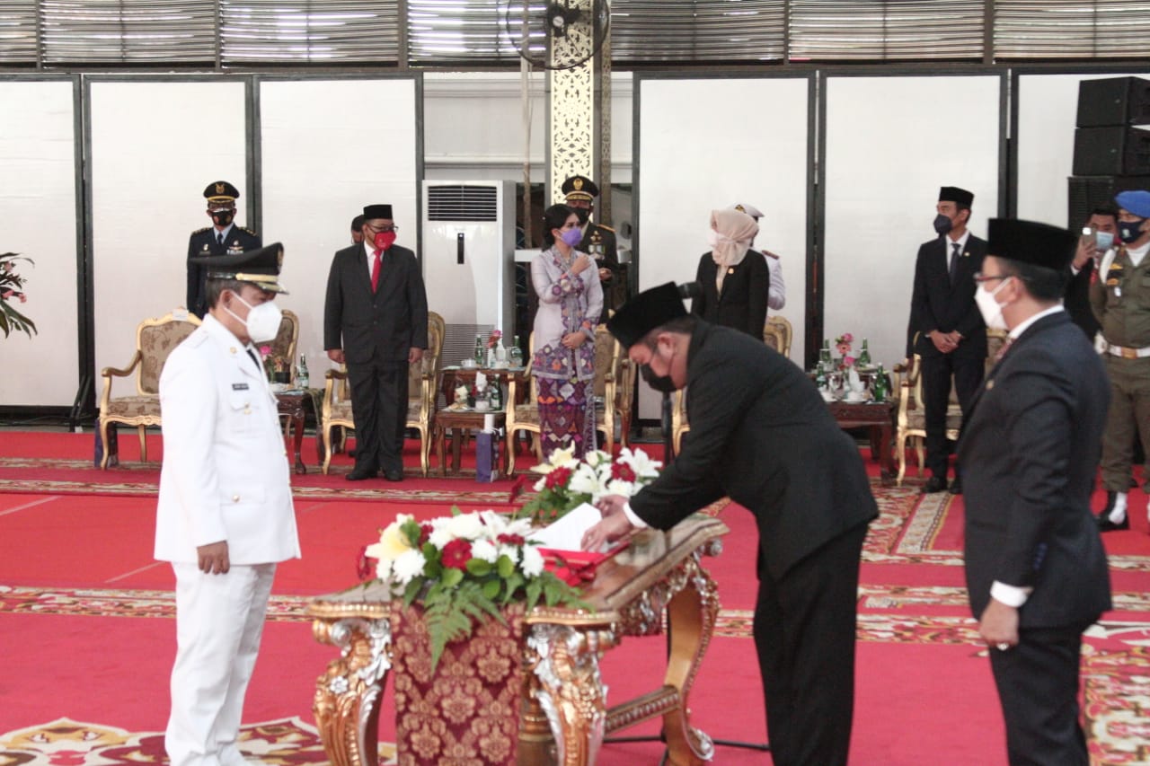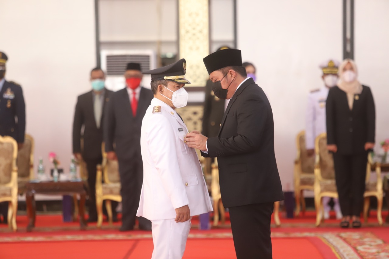 Pengambilan sumpah jabatan dan pelantikan kepala daerah tersebut ditandai dengan pembacaan surat keputusan Menteri Dalam Negeri, pengucapan sumpah jabatan, dilanjutkan dengan penandatanganan berita acara pengucapan sumpah jabatan, pemasangan tanda pangkat jabatan dan penyematan tanda jabatan, serta penandatanganan fakta integritas.