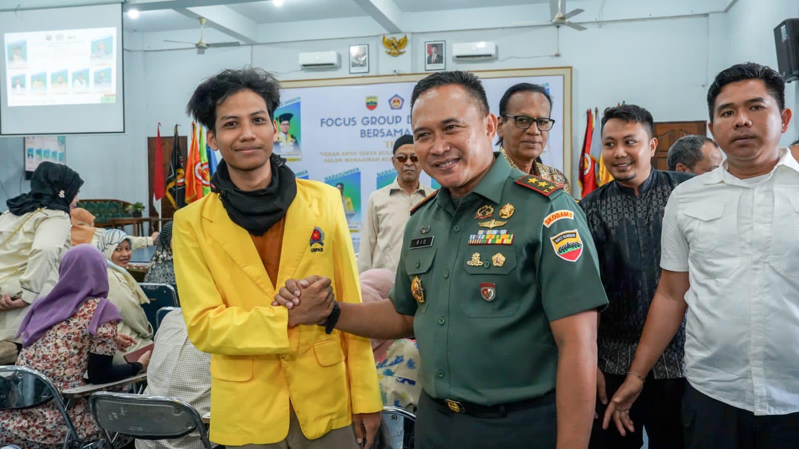 Dalam sambutannya, Pangdam menekankan pentingnya kolaborasi antara mahasiswa sebagai agen perubahan dan TNI sebagai penjaga kedaulatan negara.