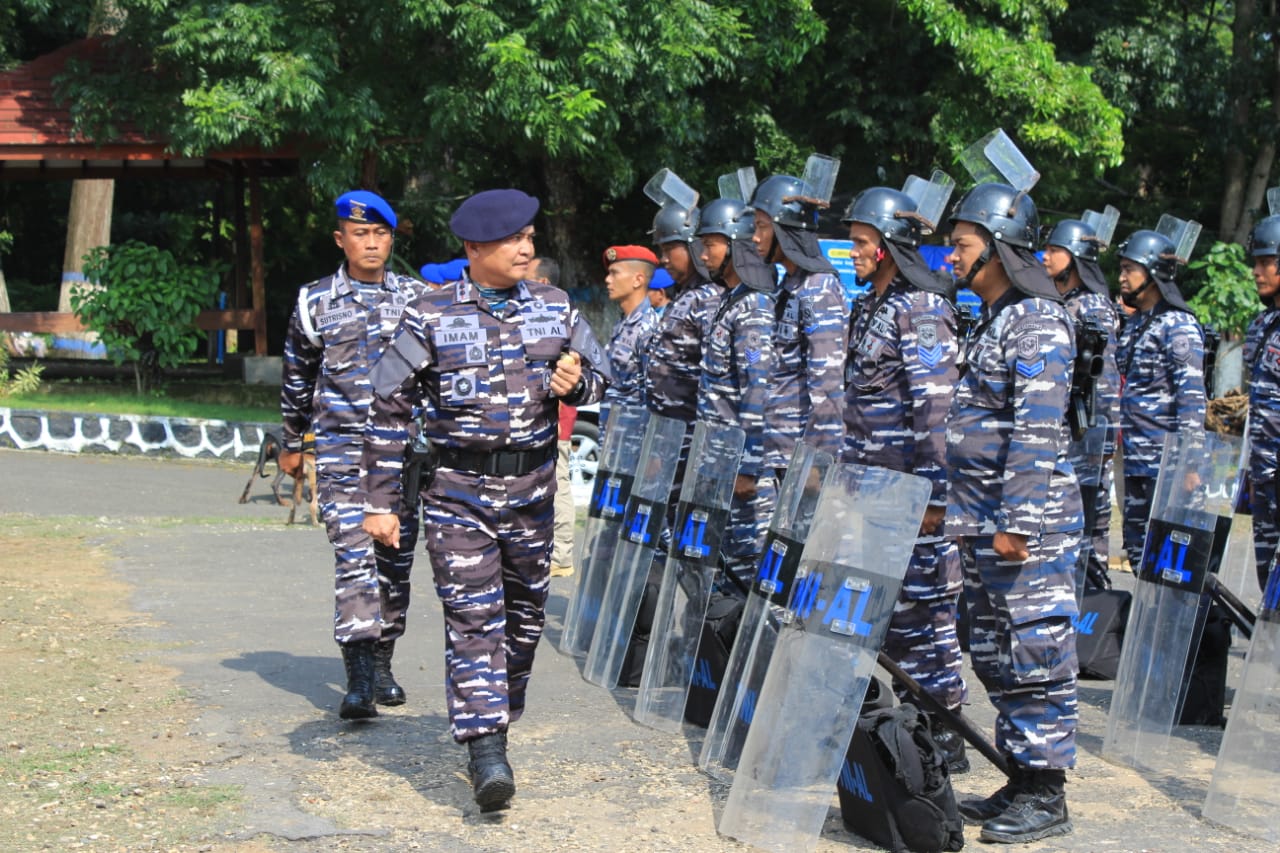 Kegiatan apel gelar dilaksanakan untuk menghadapi Pam Pemilihan Umum Presiden Tahun 2024 yang secara serentak digelar di seluruh Nusantara, guna mendukung tertib dan lancarnya pesta demokrasi tersebut Pangkalan TNI AL (Lanal) Batuporon menggelar pasukan dan materialnya di depan gedung Mako Lanal Batuporon, Kamal Bangkalan Madura. (12/02/2024).