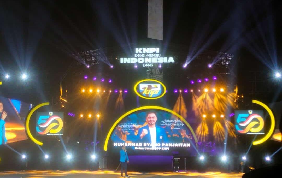 Pengurus DPD (Dewan Perwakilan Daerah) KNPI (Komite Nasional Pemuda Indonesia) Kabupaten Bogor menghadiri Hut (Hari Ulang Tahun) ke 50 tahun yang digelar oleh DPP KNPI dengan mengangkat tema “KNPI EMAS MENUJU INDONESIA EMAS” di tahun 2045 (100 tahun kemerdekaan), di Lapangan Banteng Jakarta Pusat, Minggu Malam (23/07/2023).