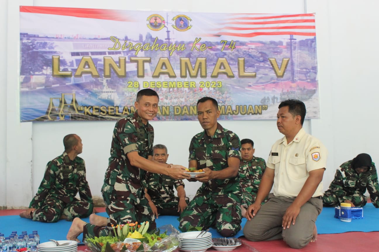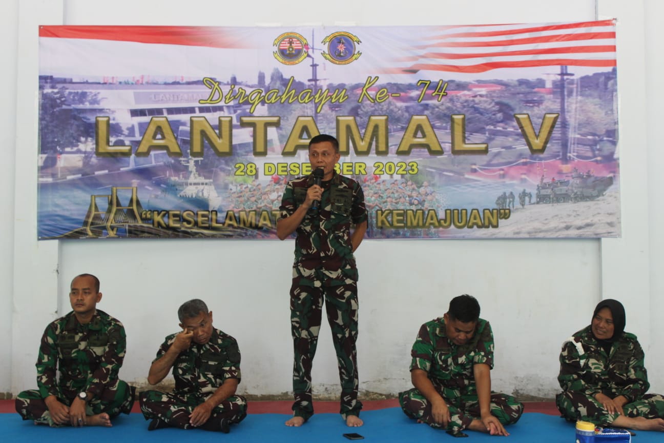 Komandan Pangkalan TNI Angkatan Laut (Danlanal) Batuporon diwakili Palaksa Lanal Batuporon Mayor Laut (P) Nursalim menggelar do’a bersama dalam rangka peringatan HUT ke-74 Lantamal V yang diperingati setiap tanggal 28 Desember, Sekaligus Tasyakuran Renovasi Garasi Parkir Satang Lanal Batuporon bertempat di Garasi Satuan Angkutan Mako Lanal Batuporon Jalan Mawar No 33 Kamal Bangkalan Madura. (28/12/2023)
