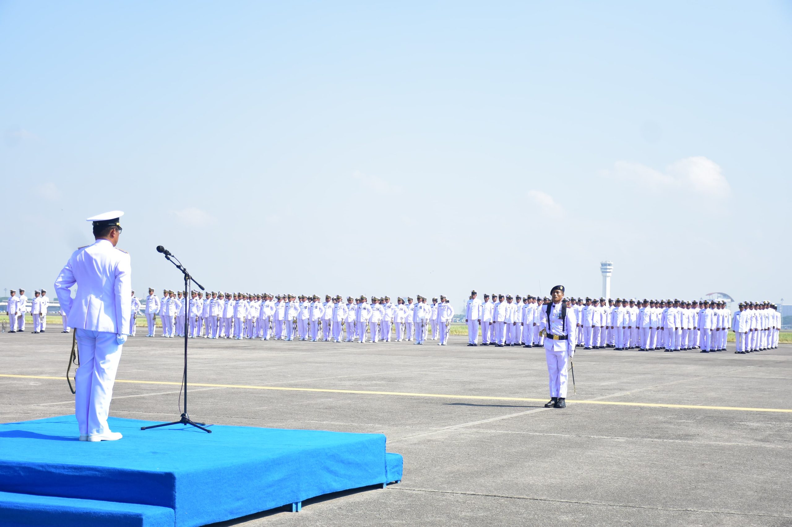Inspektur Pusat Penerbangan TNl Angkatan Laut (Irpuspenerbal), Laksma TNl Johannes Tambunan mewakili Komandan Puspenernal, Laksda TNl Bayu Alisyahbana memimpin Upacara Peringatan HUT ke-80 TNl Tahun 2025 di Apron Pangkalan Udara TNl Angkatan Laut (Lanudal) Juanda, Sidoarjo, Minggu (5/10/2025).