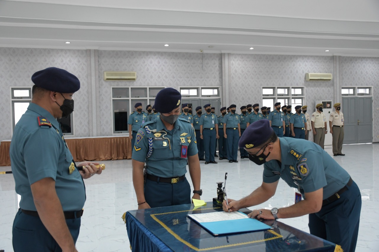 Komandan Sekolah Tinggi Teknologi Angkatan Laut (STTAL) Laksamana Pertama TNI Dr. Ir. Avando Bastari, M. Phil., M. Tr.Opsla, menerima pelaporan serah terima jabatan Kadep Akademik STTAL Letkol Laut (E) Sunarta, S.T., M.T., yang akan menempati jabatan barunya sebagai Kasubdiskurdik Disdikal Mabesal. Serah terima jabatan dilaksanakan dihadapan para pejabat STTAL dengan prosedur prokes di Auditorium Gd. Marore Kampus STTAL Bumimoro Surabaya. Kamis (9/6/2022)