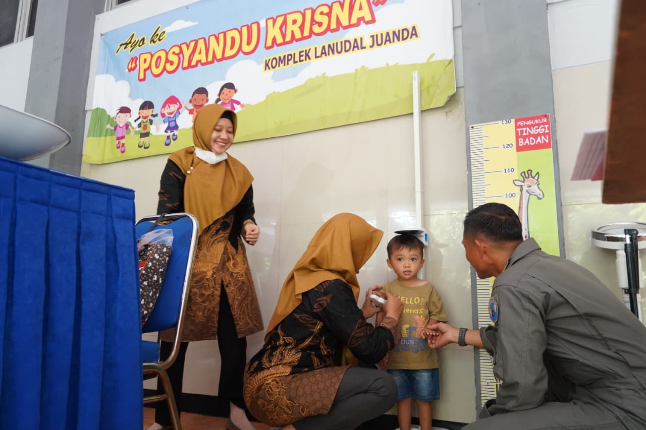 Dalam rangka meningkatkan derajat kesehatan keluarga prajurit serta masyarakat sekitar, Posyandu Krisna Lanudal Juanda kembali melaksanakan pelayanan kesehatan rutin yang digelar di GOR Serbaguna Lanudal Juanda pada Kamis (20/11/2025).