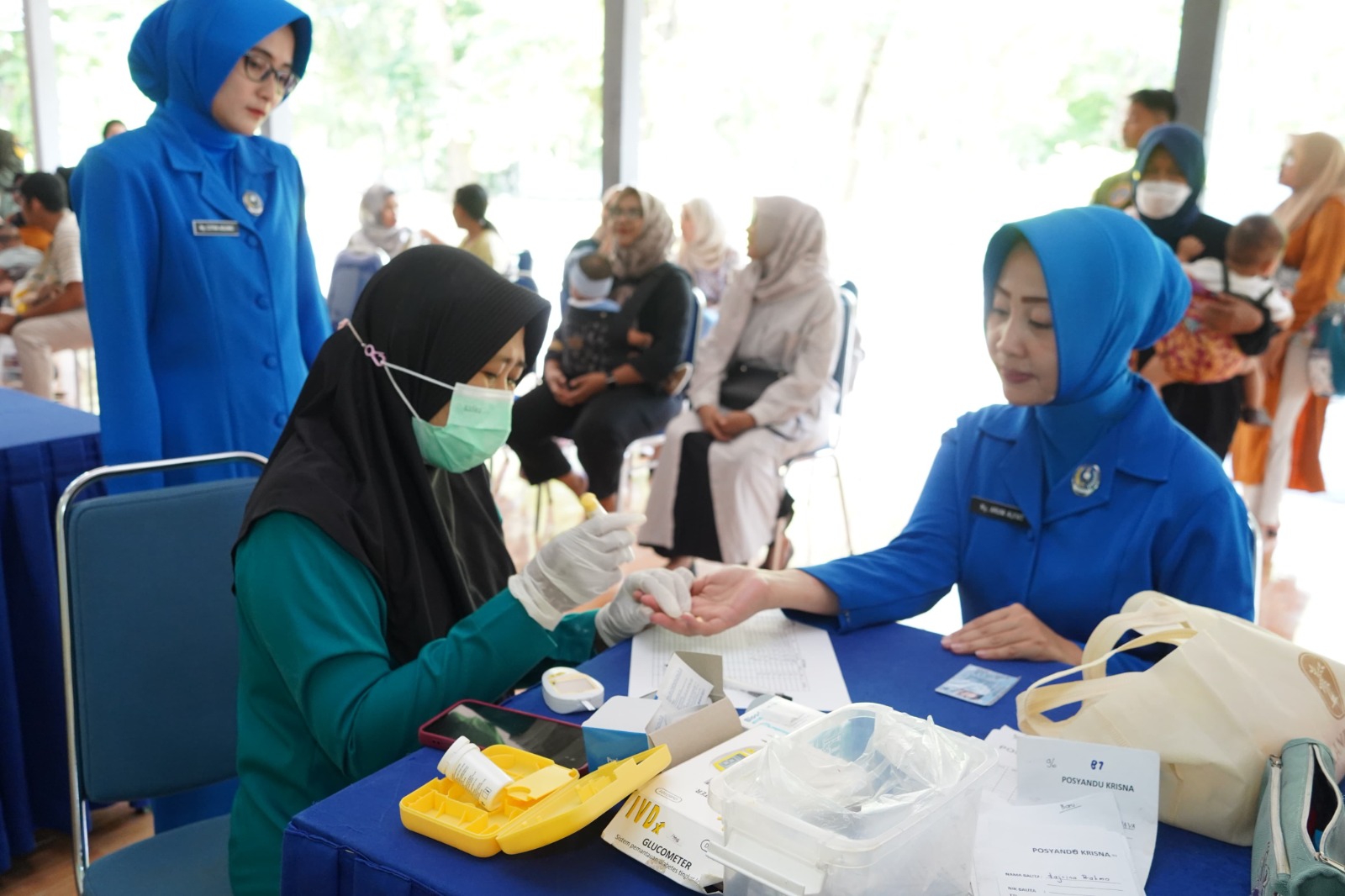 Selain itu, Posyandu Krisna Lanudal Juanda juga memberikan layanan pemeriksaan kesehatan dasar berupa cek gula darah (CGD) guna memastikan kondisi kesehatan.