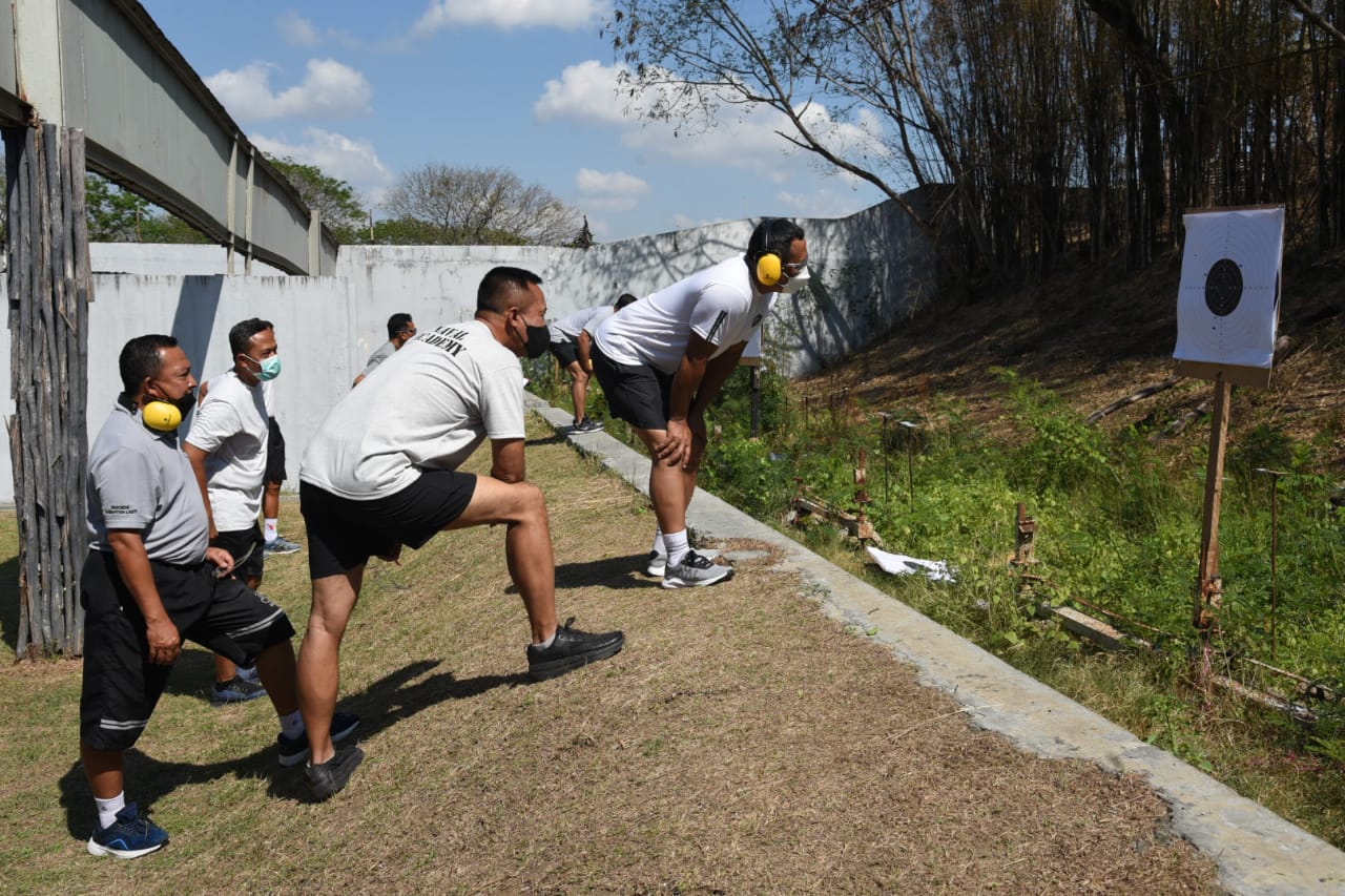 Pada latihan menembak kali ini, para peserta latihan menggunakan beberapa senjata pistol diantaranya Sig Sauer kaliber 9 mm buatan Jerman, senjata pistol G2 kaliber 9 mm buatan Pindad dan senjata pistol Tanfoglio kaliber 9 mm buatan Jerman dengan posisi menembak presisi dan posisi menembak reaksi.