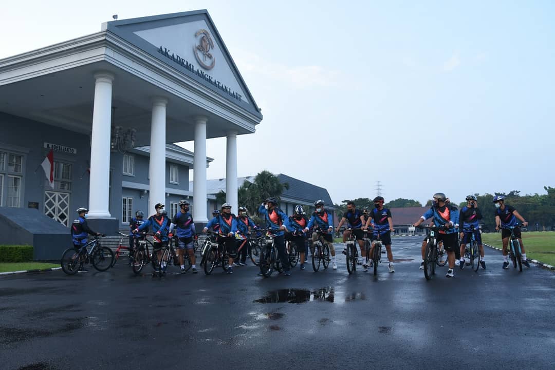 Banyak cara yang dilakukan untuk menjaga imunitas tubuh saat pandemi Covid-19, berolahraga teratur salah satunya. Setelah olahraga lari, jalan sehat, tenis lapangan, dan badminton, kini Gubernur Akademi Angkatan Laut (AAL), Mayor Jenderal TNI (Mar) Nur Alamsyah, S.E., M.M., M.Tr (Han) mengajak perwira dijajarannya goes santai di seputar Kampus AAL, Bumimoro Surabaya, Rabu (8/6).