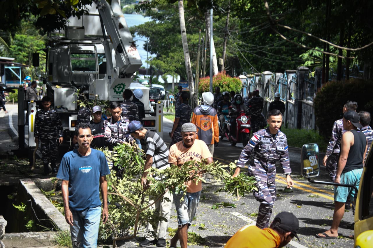 Untuk menjaga keamanan dan kenyamanan masyarakat sekitar dan pengguna jalan disepanjang Jl. Piere Tendean Kota Ambon, Komando Daerah TNl Angkatan Laut (Kodaeral) lX membantu pemangkasan (Pruning) pepohonan yang dinilai membahayakan masyarakat pengguna jalan pada Kamis (16/4/2026).