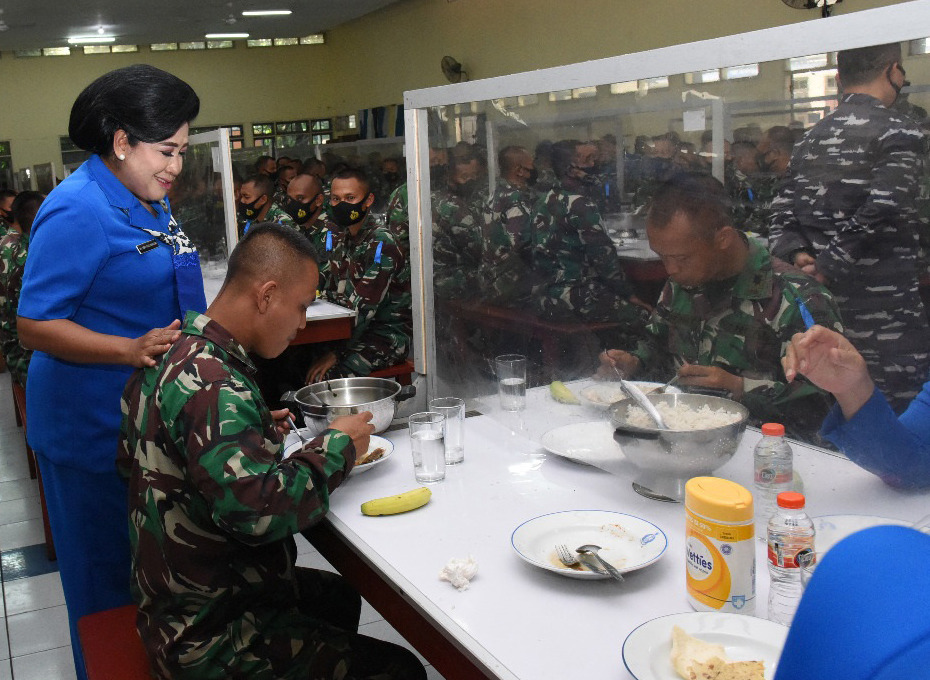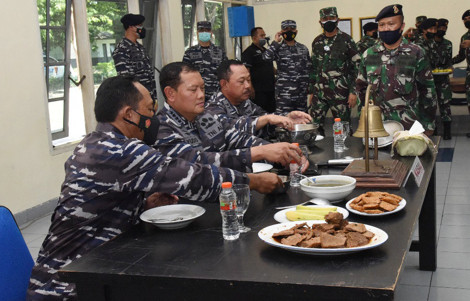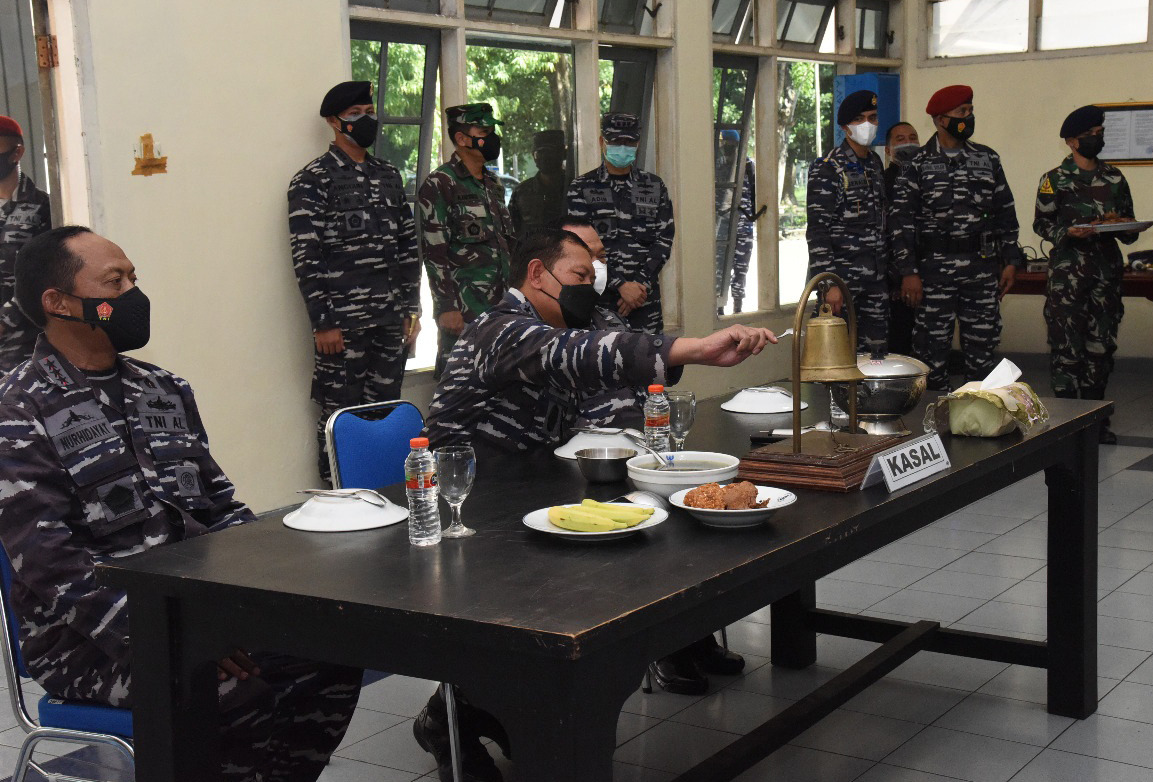 Untuk meningkatkan kebersamaan dan kedekatan dengan siswa yang sedang menempuh pendidikan di Komando Pembinaan Doktrin Pendidikan dan Latihan TNI Angkatan Laut (Kodiklatal), Kepala Staf Angkatan Laut (Kasal) Laksamana TNI Yudo Margono, S.E., M.M didampingi Dankodiklatal Laksamana Madya TNI Nurhidayat mengadakan acara makan bersama dengan Siswa Pendidikan Pembentukan Perwira (Diktukpa) TNI AL Angkatan ke-51 di Ruang Makan Gedung Jaya Wijaya Kodiklatal Bumimoro Surabaya, Kamis, (3/6/2021).