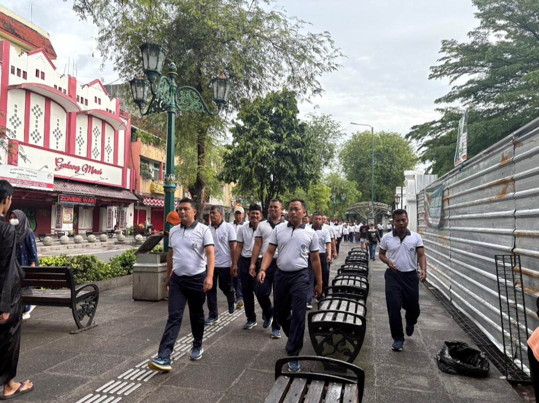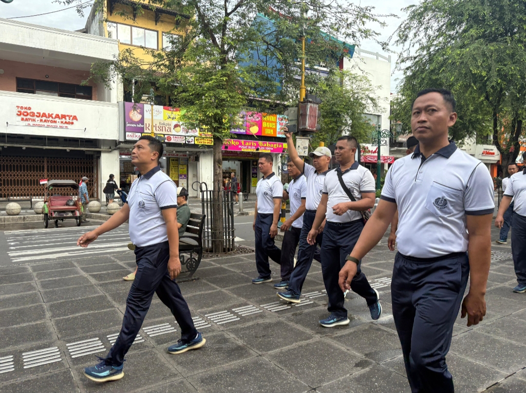 Komandan Pangkalan TNI AL Yogyakarta Kolonel Marinir Hafied Indarwan,S.E., memimpin olahraga dengan melakukan jalan sehat sejauh 5 Kilometer dalam rangka menjaga kebugaran dan meningkatkan soliditas prajurit yang bertempat di Kawasan Malioboro Yogyakarta, Jumat (14/11/2025).
