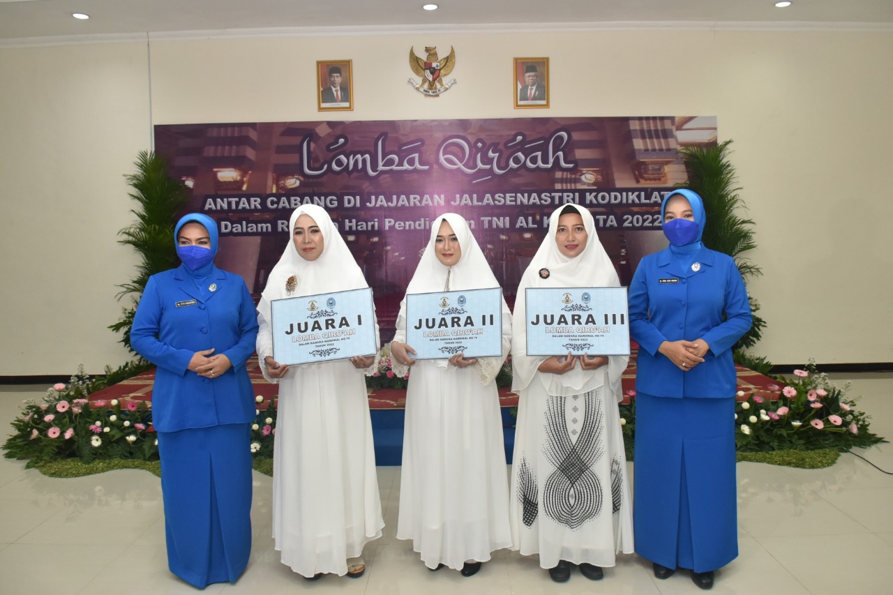 Dalam rangka memperingati Hari Pendidikan TNI AL (Hardikal) Ke-76 tahun 2022, Jalasenastri Komando Pembinaan Doktrin, Pendidikan dan Latihan TNI AL (Kodiklatal) menyelenggarakan kegiatan Lomba Qiro’ah antar cabang di jajaran Jalasenastri Kodiklatal di Gedung Betelgeuse, Pusdiklapa, Kodiklatal, Bumimoro, Surabaya, Selasa (19/04).