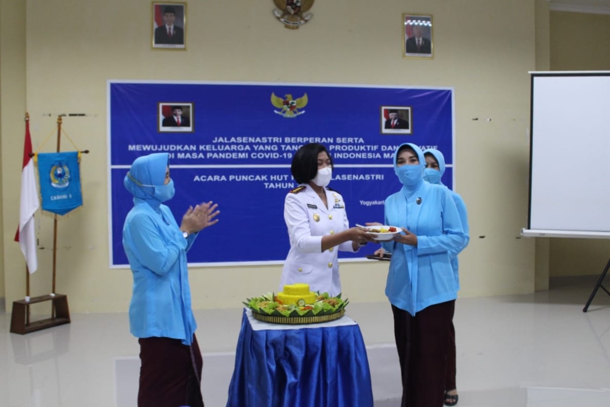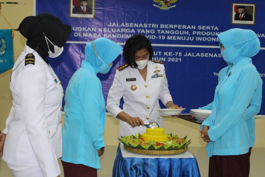 Kegiatan dihadiri Danlanal Yga, Kolonel Laut (KH/W) Damayanti, S.H.,M.M., CHRMP, Pasprogar Lanal Yga, Mayor Laut (S/W) Soelastijaningsih, Pjs Kaset Lanal Yga, Lettu Laut (K/W) Lettu Laut (K/W) Erfina Nurmalia, Pabinhar Cab 8 Korcab V DJA, Letda Laut (S/W) Yuliasih, para pengurus Jalasenastri serta undangan terkait, kegiatan digelar secara hikmat dilanjutkan dengan pemotongan tumpeng serta tetap menerapkan protokol kesehatan sesuai perintah pimpinan dan anjuran pemerintah.