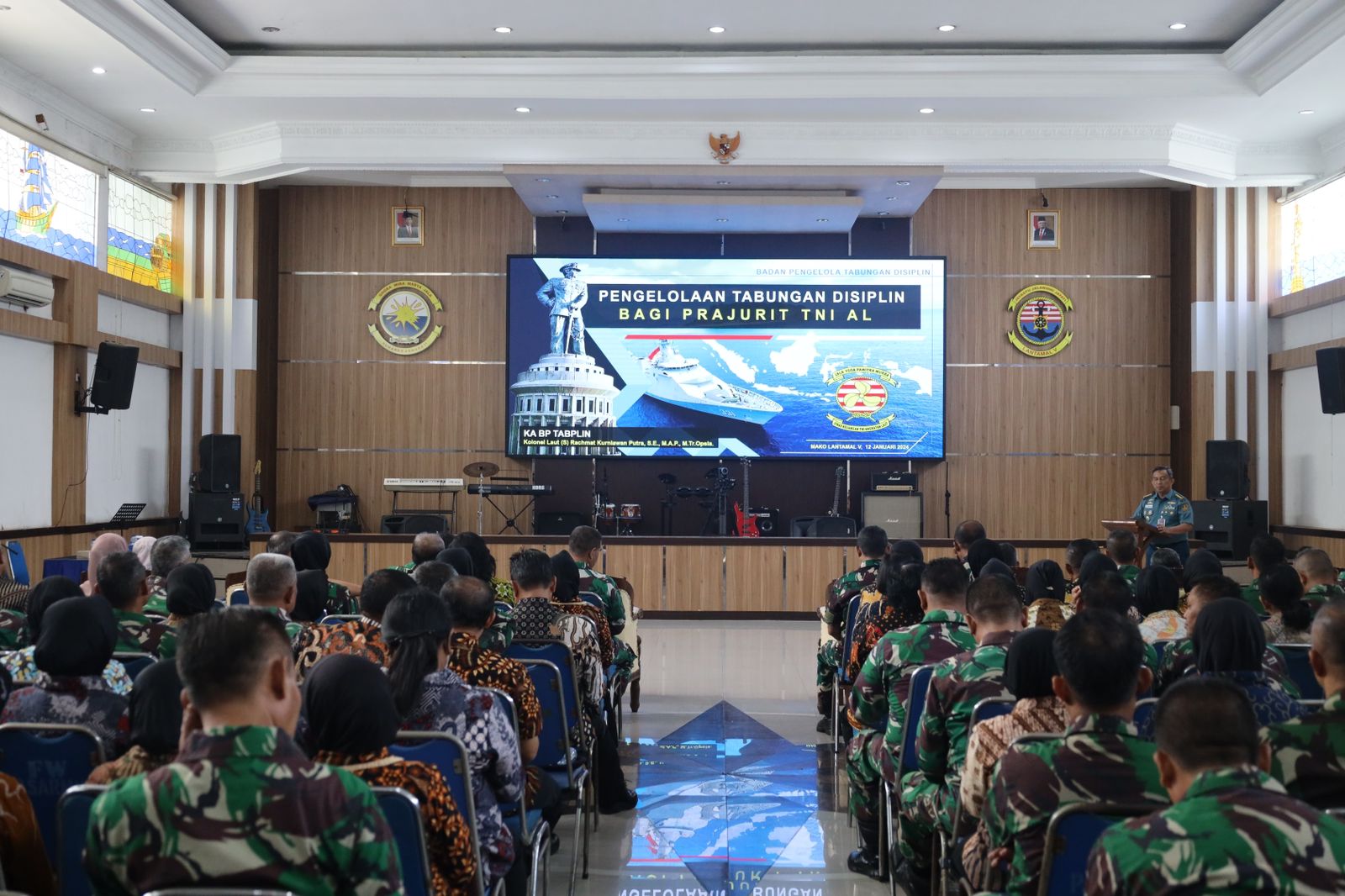 Guna menjamin kesejahteraan Prajurit dan Pegawai Negeri Sipil (PNS), Pangkalan Utama TNI AL (Lantamal) V menerima Sosialisasi Manajemen Pengelolaan Dana Tabungan Disiplin (Tabplin) TNI Angkatan Laut (TNI AL) yang disampaikan oleh Kepala Badan Pengelola Tabplin, Kolonel Laut (S) Rachmat Kurniawan Putra, S. E., M.A.P., M. Tr. Opsla., beserta Tim Sosialisasi dari Diskual Mabesal di GSG Mako Lantamal V, Perak Surabaya. Jumat (12/01/2024)