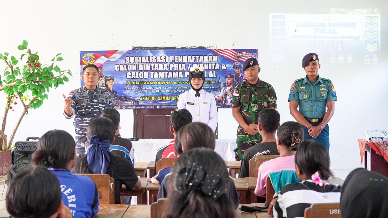 Guna menjaring bibit unggul dan pastikan seleksi penerimaan berjalan transfaran dari kalangan pelajar, Komando Daerah Angkatan Laut lX (Kodaeral IX) melaksanakan sosialisasi penerimaan calon prajurit TNI AL TA. 2026 di Wilayah Pesisir Pulau Seram Bagian Barat pada Jumat (30/1/2026).