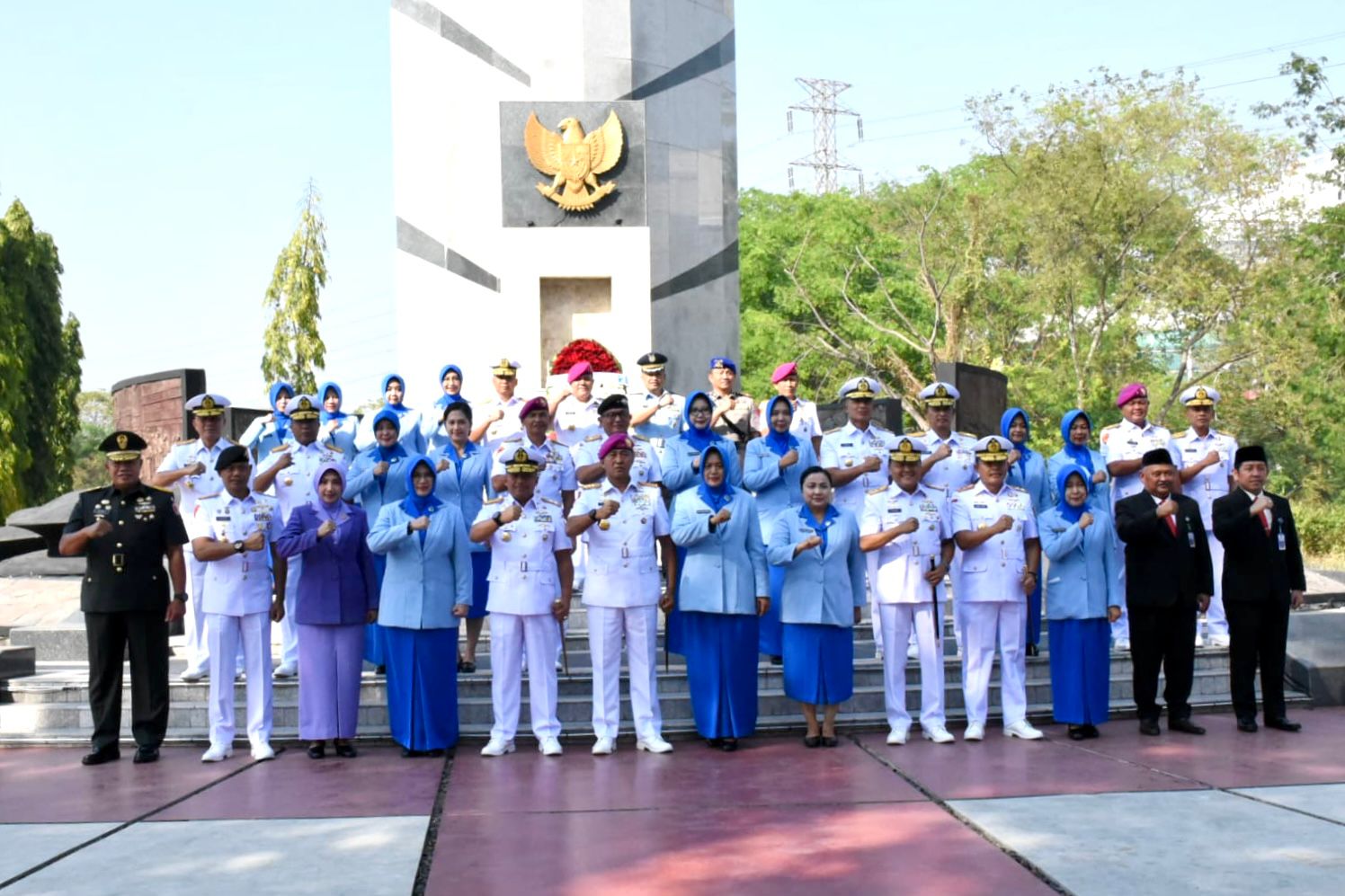 Komandan Pangkalan Utama TNI AL (Danlantamal) V Brigjen TNI (Mar) Joni Sulistiawan, S.H., M.Han beserta Ketua Korcab V Daerah Jalasenastri Armada II Ny. Heny Joni Sulistiawan mengikuti Upacara Ziarah Rombongan dalam rangka memperingati Hari Ulang Tahun (HUT) Tentara Nasional Indonesia (TNI) Angkatan Laut (AL) ke-79 Tahun 2024 di Taman Makam Pahlawan (TMP) 10 November, Jl. Mayjen Sungkono, Surabaya. Selasa (03/08/2024)