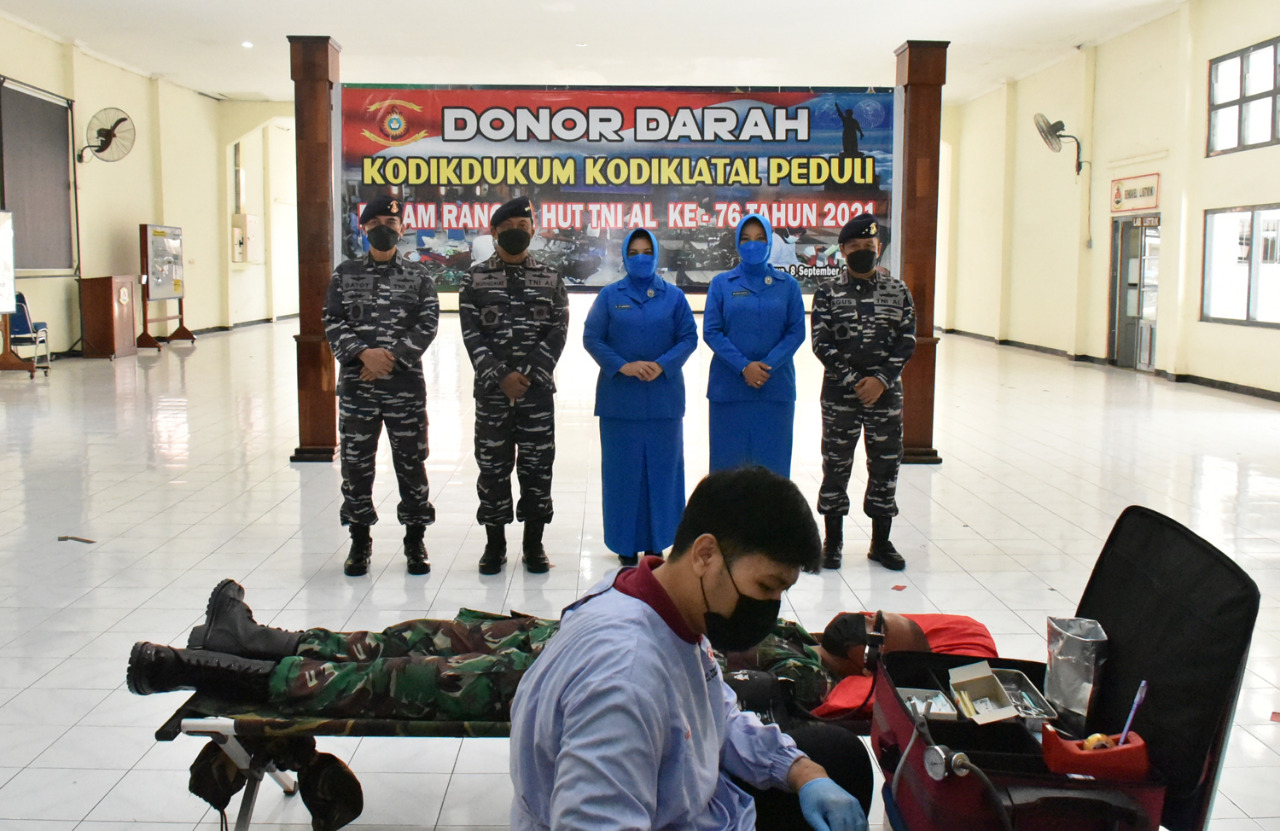 Dalam rangka memperingati HUT TNI AL ke-76 Tahun 2021, Komando Pembinaan Doktrin Pendidikan dan Latihan TNI AL (Kodiklatal) menggelar kegiatan donor darah dengan target 1.000 kantong darah terkumpul, Surabaya (08/09).