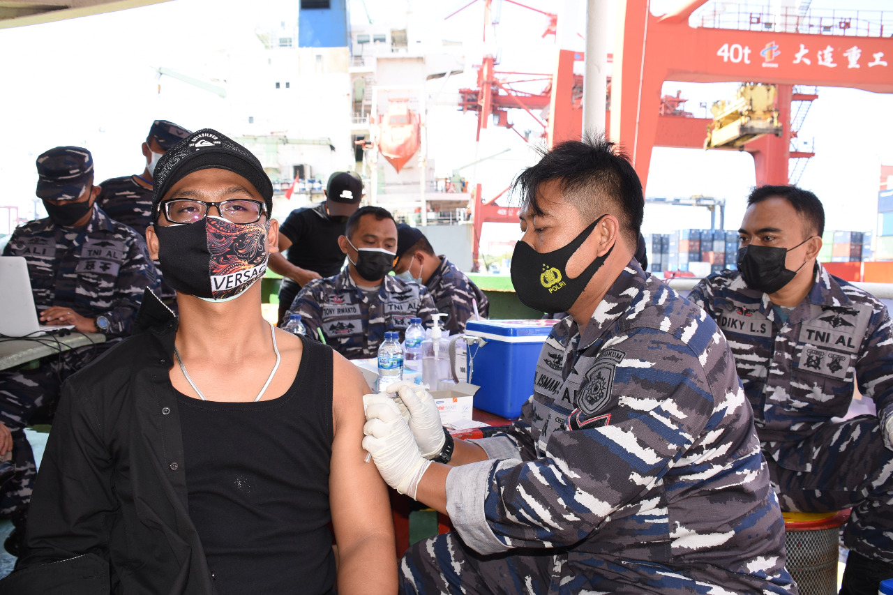 Dalam rangka memperingati HUT TNI Angkatan Laut ke-76 Tahun 2021 yang jatuh pada tanggal 10 September 2021 mendatang, Komando Pembinaan Doktrin, Pendidikan dan Latihan TNI Angkatan Laut (Kodiklatal) gencarkan serbuan vaksin kepada masyarakat maritim dan pekerja sektor pelabuhan yang berada di kapal-kapal niaga di pelabuhan Tanjung Perak Surabaya. Rabu, (8/9/21).