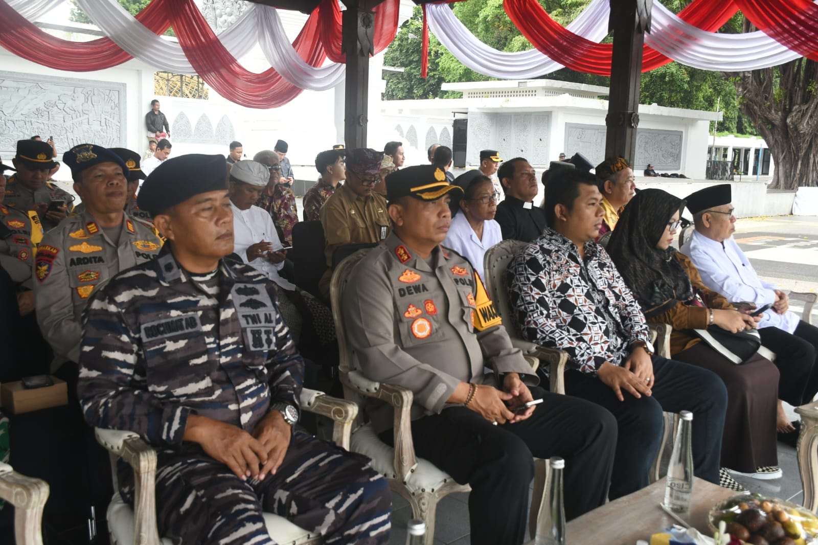 Kegiatan tersebut dihadiri Kapolresta Banyuwangi Kombes Pol Nanang Haryono, S. H., S.I.K., M. Si., Dandim 0825 Banyuwangi Letkol Kav Eko Julianto Ramadhan, M.Tr. (Han), Danlanal Banyuwangi yang diwakili Palaksa Mayor Laut (P) Rochmat Abdullah, Ketua KPUD Banyuwangi, Ketua Bawaslu Banyuwangi dan tokoh lintas agama serta stake holder terkait.