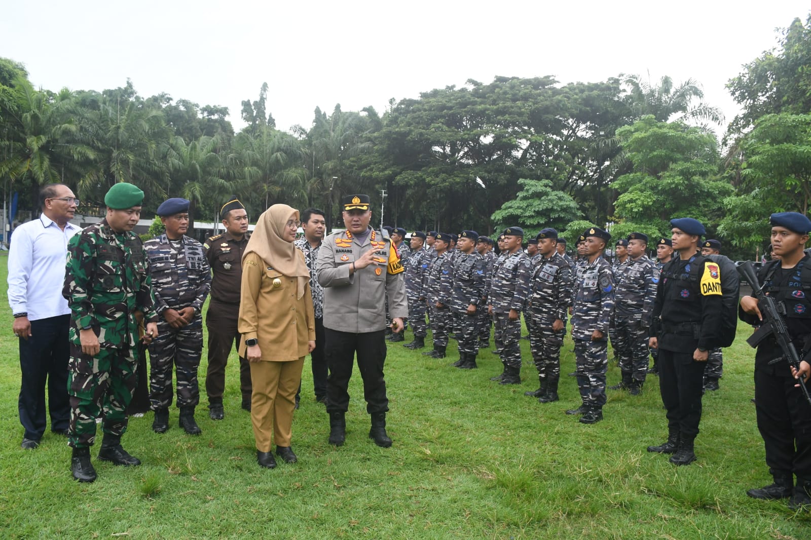 Menjelang pelaksanaan Pemilu 2024, Prajurit Pangkalan TNI AL (Lanal) Banyuwangi bersama unsur TNI-Polri Wilayah Kabupaten Banyuwangi mengikuti Apel Gelar Pasukan dan Pergeseran Pasukan (Serpas) Operasi Mantap Praja dalam rangka pengamanan Pemilu Serentak Tahun 2024 yang dipimpin oleh Bupati Kabupaten Banyuwangi Hj. Ipuk Fiestiandani, S. Pd di Lapangan Taman Blambangan Kelurahan Kepatihan Kecamatan Kabupaten Banyuwangi. (12/2/2024).