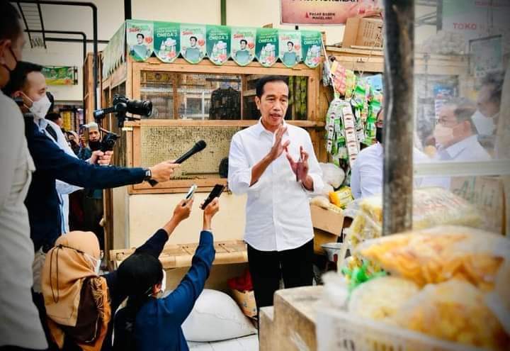 Beberapa hari menjelang bulan suci Ramadan, Presiden Joko Widodo mengecek ketersediaan sejumlah bahan kebutuhan pokok masyarakat di sejumlah pasar tradisional. Salah satu pasar yang dikunjungi adalah Pasar Rakyat di Desa Tempurejo, Kecamatan Tempuran, Kabupaten Magelang, Provinsi Jawa Tengah, pada Rabu, 30 Maret 2022.