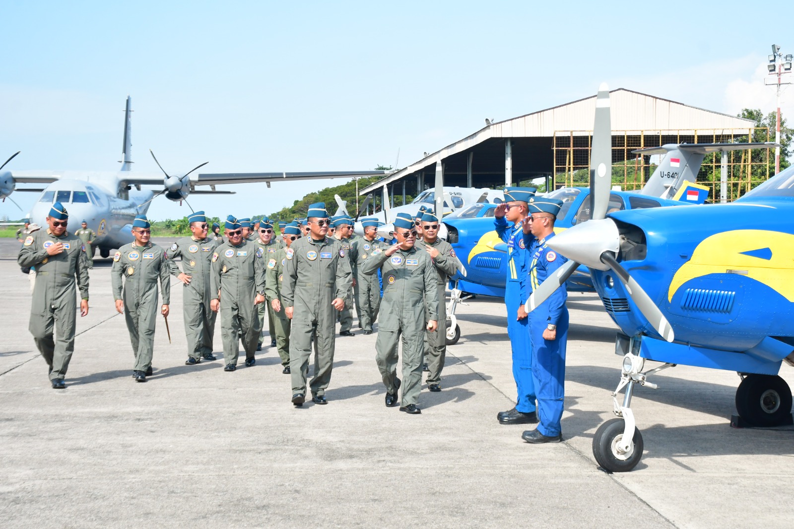 Menjelang Serah Terima Jabatan (Sertijab) kepada Laksamana Pertama TNl Bayu Ali Syahbana, Komandan Pusat Penerbangan TNl Angkatan Laut (Danpuspenerbal), Laksamana Muda TNI Siayani Jaffar melaksanakan tradisi Admiral Inspection terhadap pesawat udara dan berbagai fasilitas yang ada di kawasan Pangkalan Udara TNl AL, Juanda, Rabu (7/5/2025).
