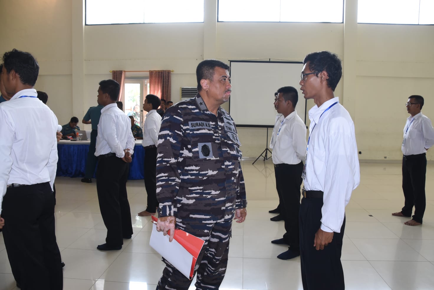 Menjelang tahap akhir seleksi, 750 calon siswa Komponen Cadangan (Komcad) Matra Laut mengikuti pra sidang atau gladi bersih Pantukhir (Panitia Penentuan Akhir), yang berlangsung di Balai Prajurit (Bapra) Komando Pendidikan Marinir (Kodikmar) jajaran Komando Pembinaan Doktrin Pendidikan dan Latihan TNI AL (Kodiklatal) di Gunung Sari Surabaya, Kamis (4/5/2023).