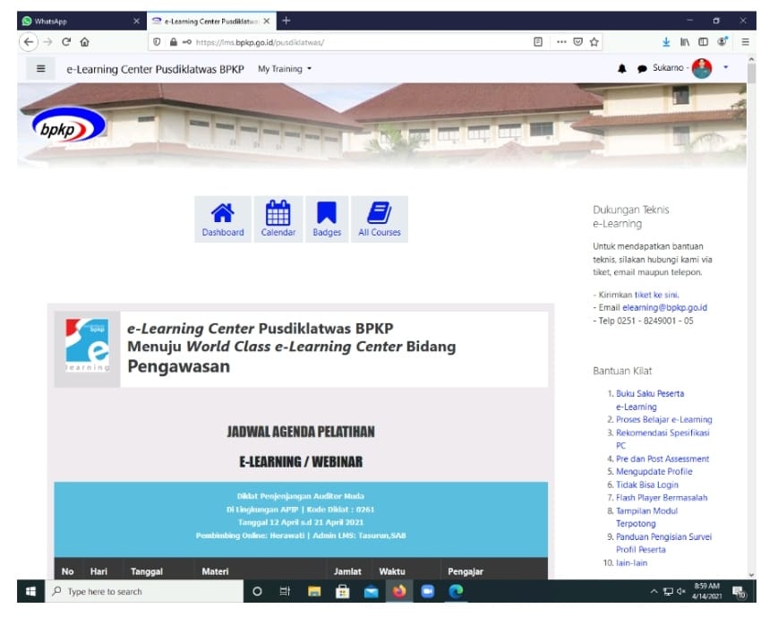 Kabid Penjamin Mutu Internal LPM Sekolah Tinggi Teknologi Angkatan Laut (STTAL), Mayor Laut (KH) Sukarno, A.Md., S.T., M.T., berkesempatan mengikuti Kursus Pembentukan Auditor Ahli Gelombang I Program TNI AL TA 2021 secara E_Learning dari ruang kerjanya di Kampus STTAL Jl. Bumimoro Surabaya . Rabu (14/4/2021)