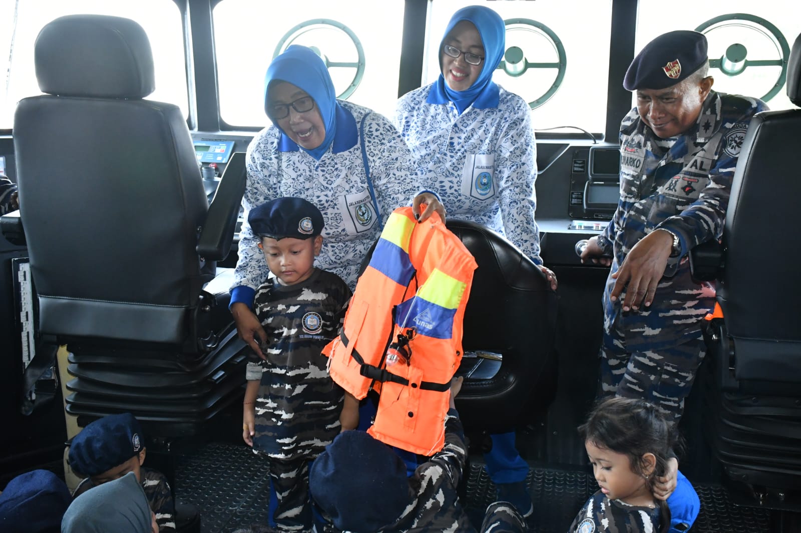 Dalam rangka mengenalkan salah satu alutsista TNI AL, KAL Rajegwesi II-5-40 terima kunjungan edukasi bahari TK Hang Tuah 21 Banyuwangi, bertempat di Dermaga Marina Pantai Boom Kelurahan Kampung Mandar Kec/Kab. Banyuwangi, (24/02/2023).