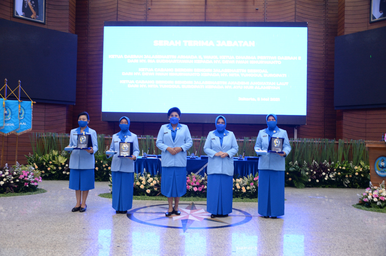 Ketua Cabang Berdiri Sendiri Jalasenastri Akademi Angkatan Laut (CBS AAL) diserahterimakan Ny. dr. Nita Tunggul Suropati kepada Ny. Ayu Nur Alamsyah yang dipimpin Ketua Umum Jalasenastri Ny. Vero Yudo Margono di Auditorium Denma Mabesal, Cilangkap, Jakarta Timur, kemarin.