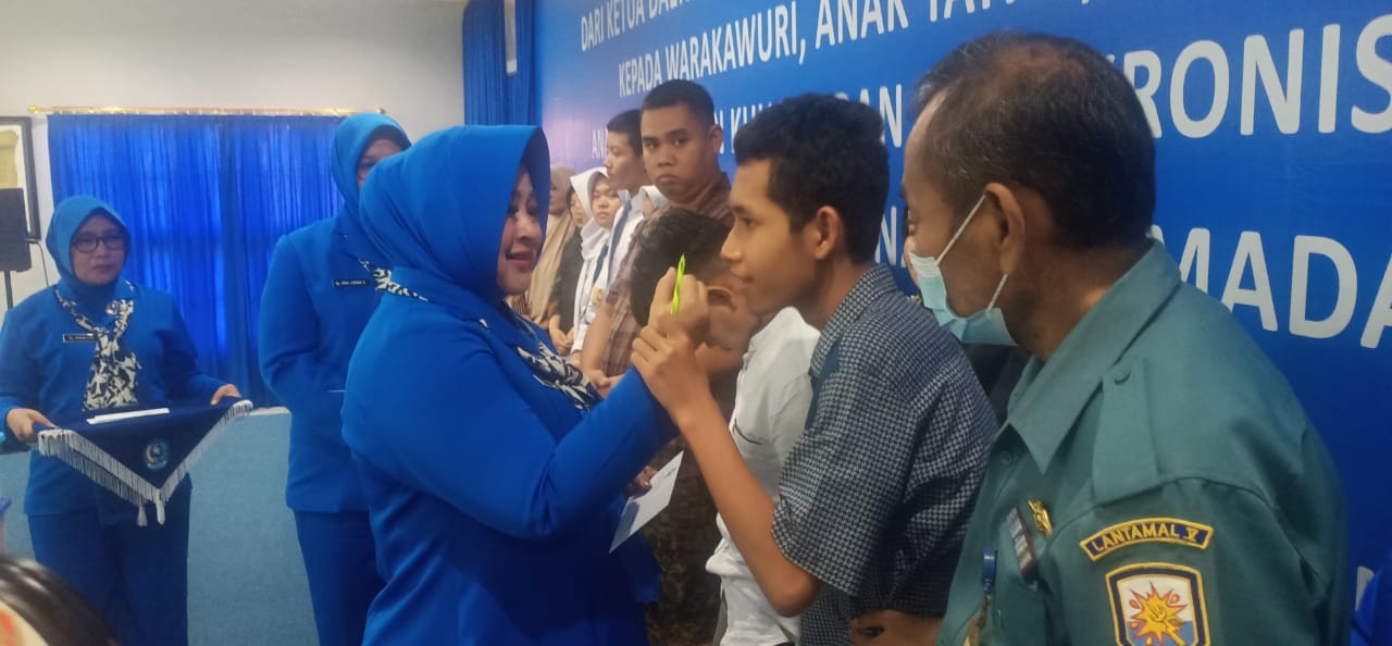 Selanjutnya rombongan menuju di Gd. Geldra Mako Lanal Malang untuk sesi penyerahan Tali Asih dari Ketua DJA II kepada Warakawuri, Anak Yatim, Anak Berkebutuhan Khusus dan Sakit Kronis Cabang 9 Korcab V Daerah Jalasenastri Armada II.