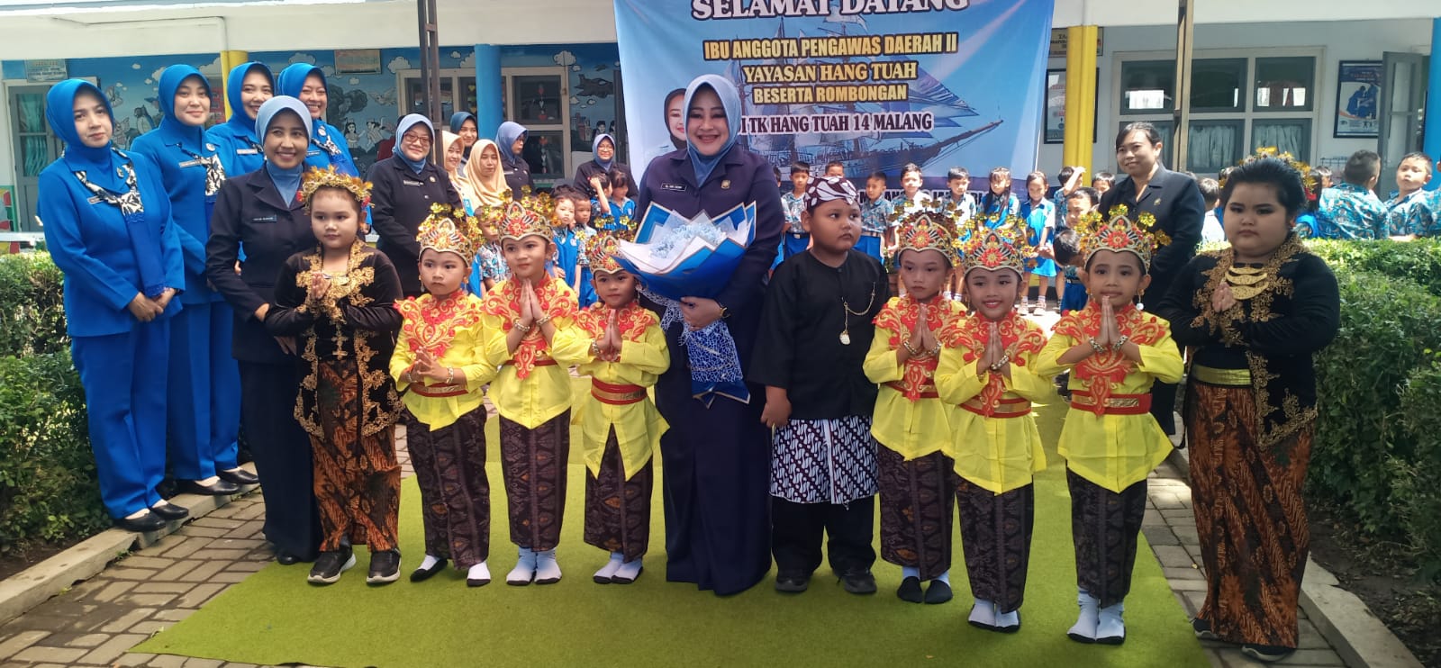Dalam rangkaian kunjungan silahturahmi tersebut Ketua DJA II disambut langsung oleh Komandan Pangkalan TNI AL (Danlanal) Malang Kolonel Laut (KH/W) Rinanda Sintasari., S. Sos., M. Tr. A.P dan dilanjutkan dengan pemberian karangan bunga dan tarian Yapong oleh siswi TK Hang Tuah 14 serta berkesempatan meninjau kegiatan di ruangan kelas dan pemberian bingkisan kepada siswa – siswi serta Kasadik TK Hang Tuah 14 Malang.