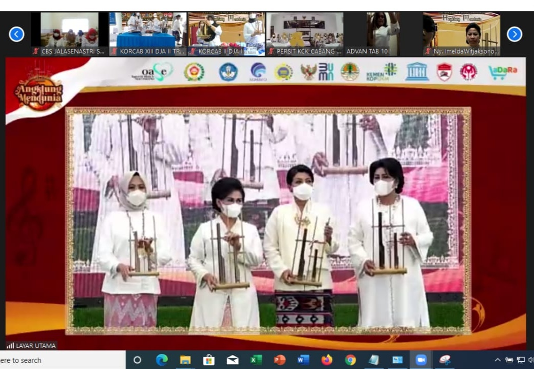 “Sejak 16 November 2010, UNESCO telah mengakui angklung sebagai Karya Agung Warisan Budaya Lisan dan Non Bendawi Manusia. Namun tidak banyak yang tahu setiap 16 November diperingati sebagai Hari Angklung Sedunia,” kata Ibu Negara, Iriana secara virtual.