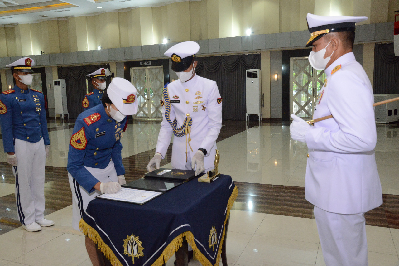 Menjelang Prasetya Perwira (Pelantikan Perwira TNI) pada 13 Juli mendatang, 101 Calon Perwira Remaja Akademi Angkatan Laut (Capaja AAL) Angkatan ke-66 Tahun 2021 dengan penuh khidmat dan Sakral mengikrarkan Sumpah Prajurit yang dipandu Gubernur AAL, Mayor Jenderal TNI (Mar) Nur Alamsyah, S.E.M.M., M.Tr (Han) pada Upacara Penyumpahan Prajurit yang digelar di Gedung Mas Pardi, Kesatrian AAL Bumimoro, Surabaya, Jumat (25/6).