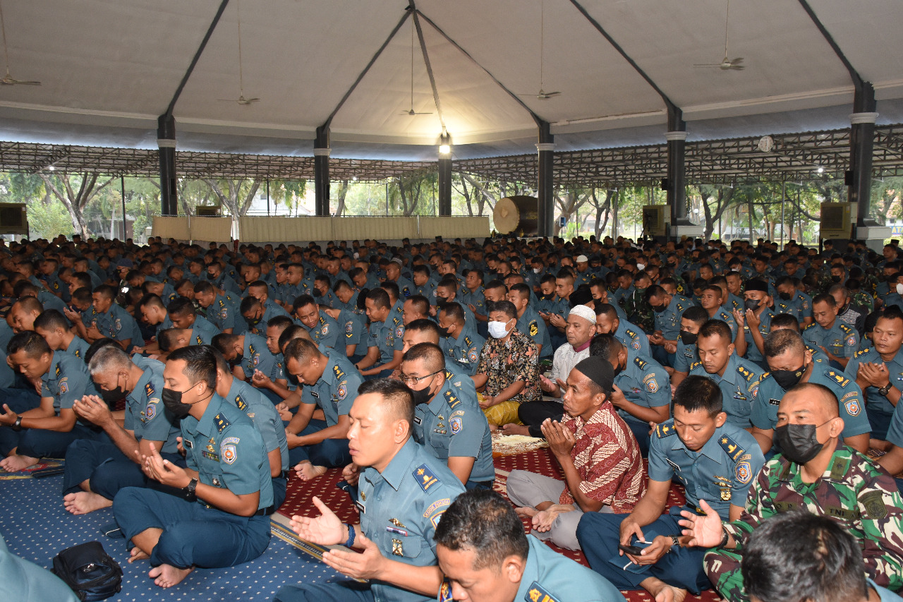 Keluarga besar Komando Pembinaan Doktrin, Pendidikan dan Latihan TNI AL (Kodiklatal) , yang terdiri dari prajurit, PNS serta para Siswa yang sedang menempuh pendidikan di Kodiklatal merayakan Hari Raya Idul Adha 1443 Hijriyah/2022 Masehi dengan melaksanakan sholat Idul Adha berjamah secara khusyuk dan khidmat di Masjid Ibadurrahman Kesatrian Bumimoro Kodiklatal, Minggu (10/7/2022).