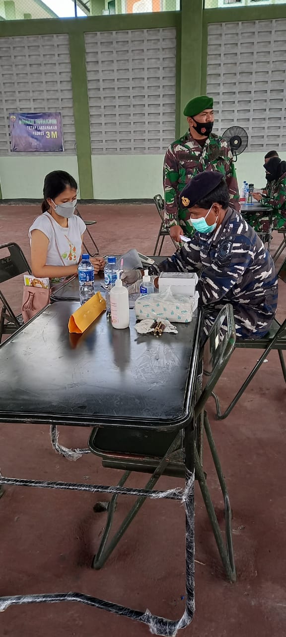 Hingga hari ke dua, sejak pelaksanaan hari pertama Selasa (3/8) pelaksanaan vaksin dosis kedua ini masih terlihat totalitas dan semangat para Nakes (Tenaga Kesehatan) dari TNI AL, Lanal Denpasar yang dipimpin oleh Kepala Balai Kesehatan (Ka BK) Kapten Laut (K/W) I Gusti Ayu Meilani A.Md. Kep., yang tergabung dengan petugas Nakes lainnya dari Kesehatan Kodam IX/Udayana.