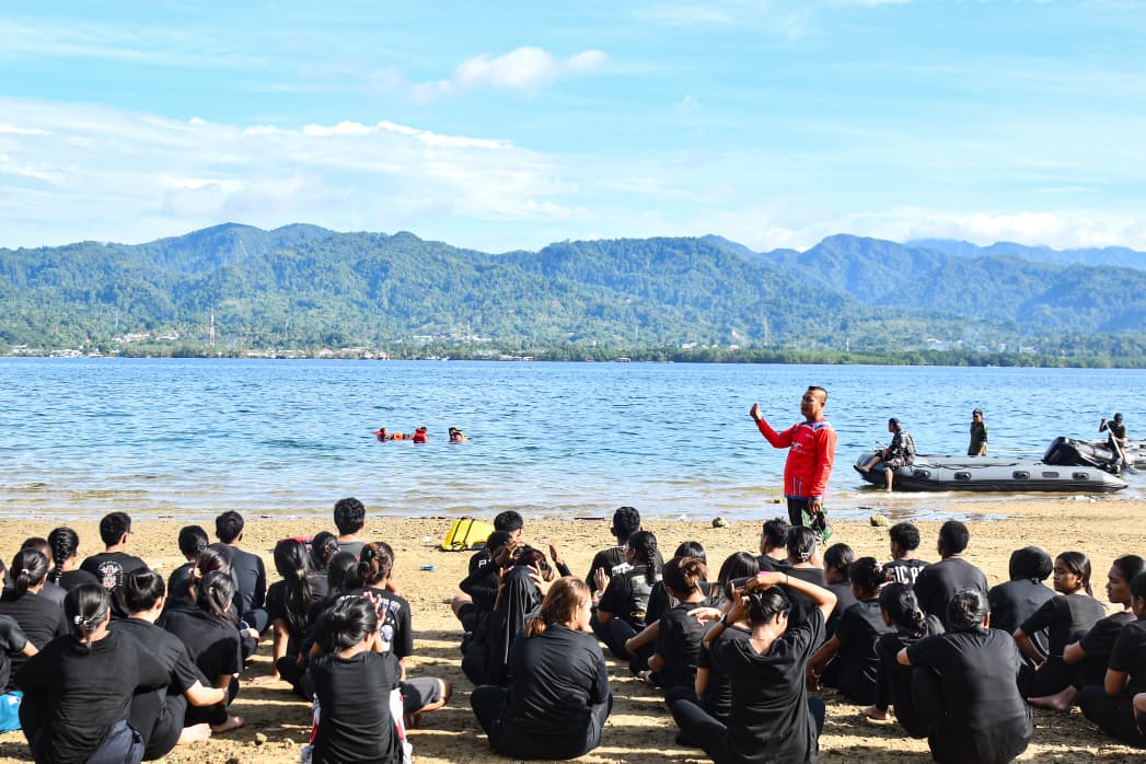 Komando Daerah Angkatan Laut lX (Kodaeral IX) memberikan Pelatihan Evakuasi Medis Laut (EML) bagi 52 Mahasiswa Prodi S1 Keperawatan Sekolah Tinggi Ilmu Kesehatan (STIKes) Pasapua Ambon yang digelar di pesisir pantai kawasan Mako Kodaeral IX, Halong, Kota Ambon, Minggu (1/2/2026).