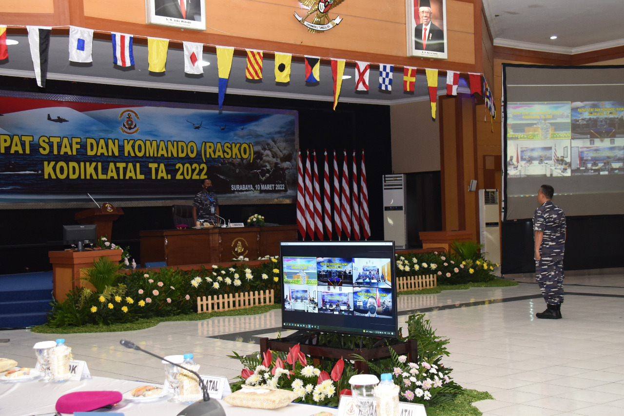 Komando Pembinaan Doktrin Pendidikan dan Latihan TNI Angkatan Laut (Kodiklatal) menggelar Rapat Staf dan Komando (Rasko) Tahun 2022, sebagai tindak lanjut pelaksanaan Rapim Kemhan RI, Rapim TNI-Polri serta Rapim TNI AL. Rasko Kodiklatal dipimpin Komandan Kodiklatal (Dankodiklatal) Letjen TNI Marinir Suhartono yang dilaksanakan di Gedung Moeljadi Kesatrian Kodiklatal Bumimoro Surabaya, Kamis, (10/3).