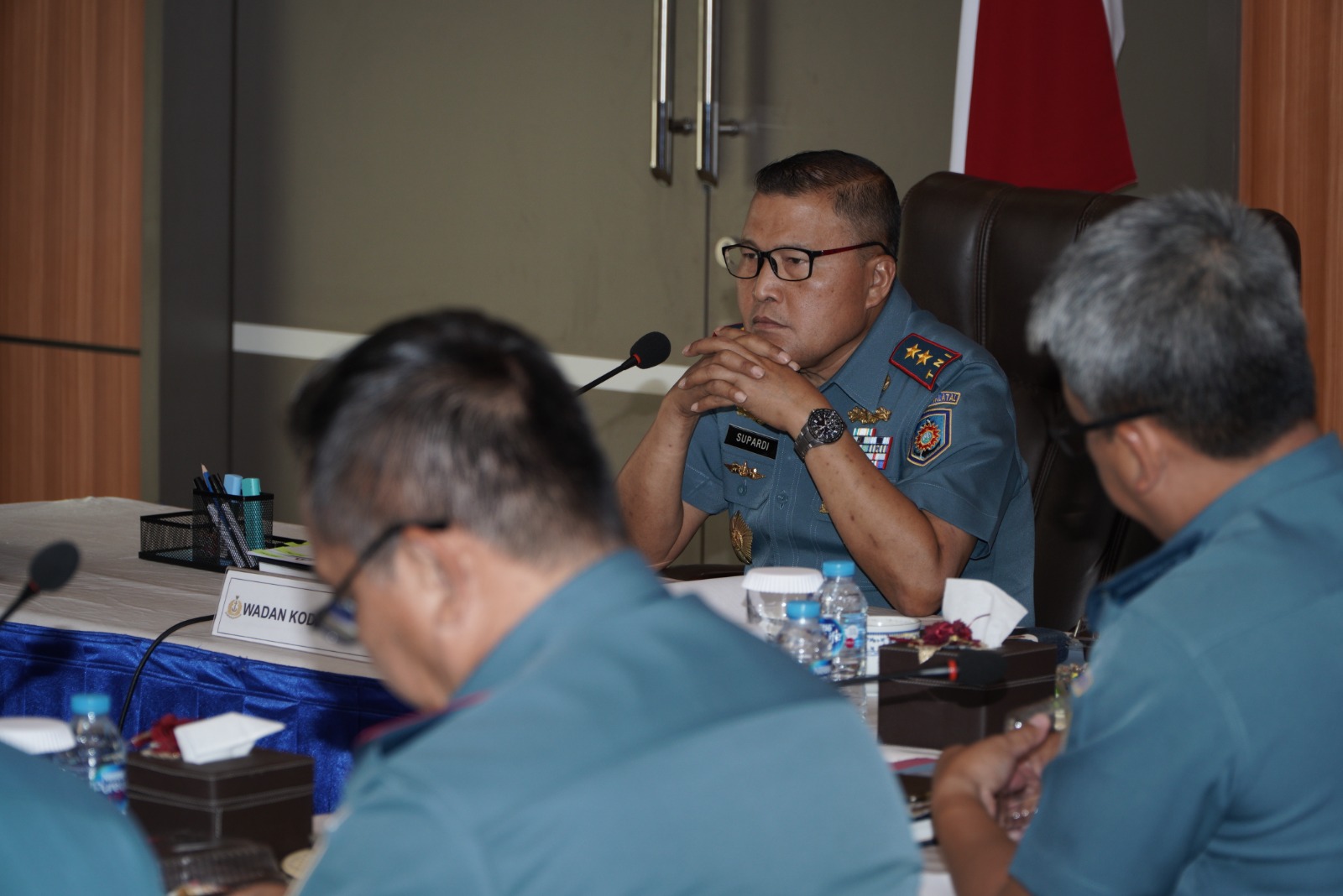 Wakil Komandan (Wadan) Kodiklatal Laksda TNI Supardi mewakili Dankodiklatal Letjen TNI Marinir Suhartono memimpin rapat Uji Naskah I Petunjuk Teknis (Juknis) Latihan Praktek (Lattek) Terjun Bebas (Free Fall) dan Juknis Lattek Terbang Lanjut, bertempat di Gedung Wijaya Kusuma Kodiklatal, Bumimoro Surabaya. Selasa, (03/10/2023).