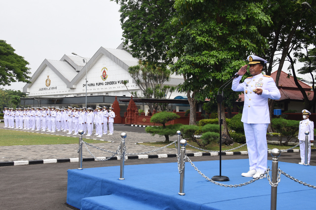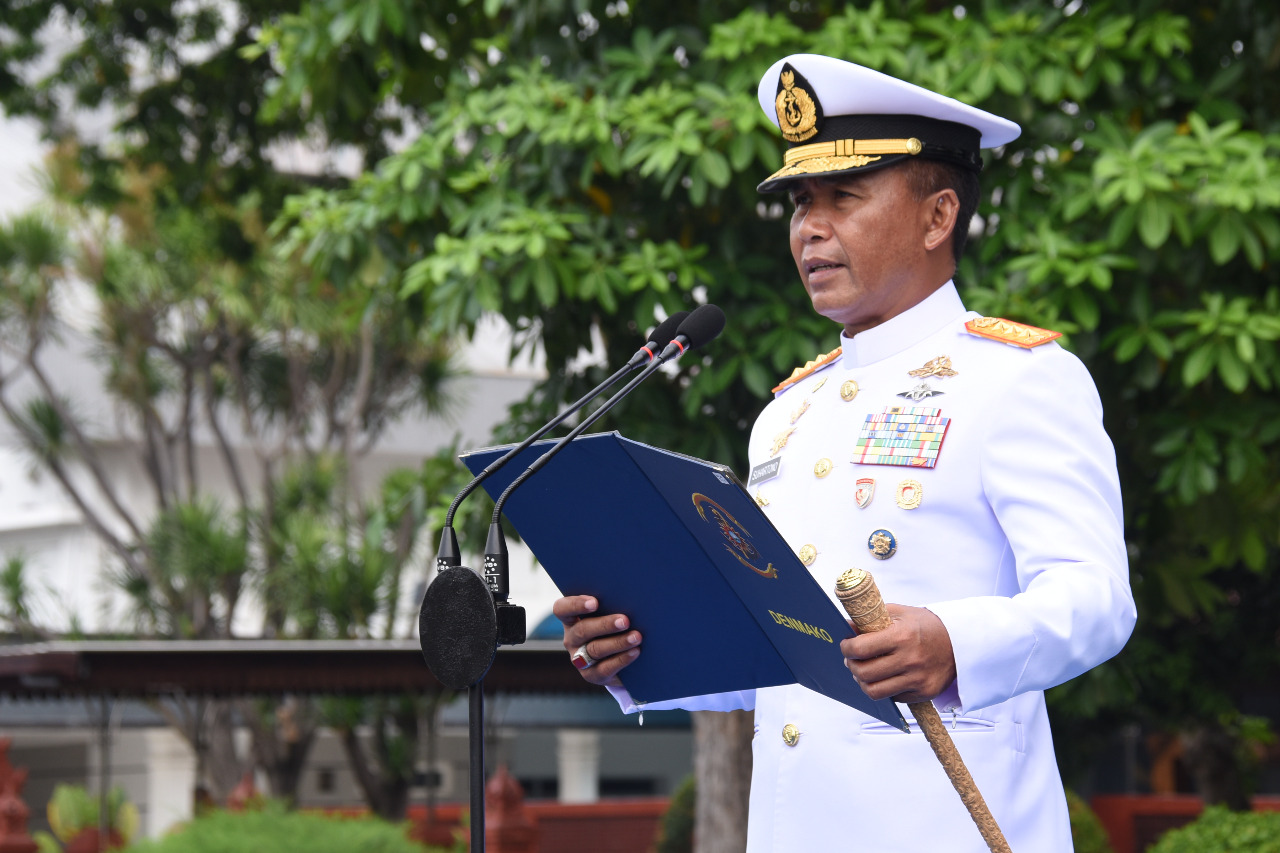 Komandan Komando Pembinaan Doktrin Pendidikan dan Latihan TNI Angkatan Laut (Dankodiklatal) Letnan Jenderal TNI Marinir Suhartono, menjadi Inspektur Upacara (Irup) pada upacara peringatan Hari Kesaktian Pancasila 1 Oktober 2022, yang dihelat di Lapangan Laut Maluku Ksatrian Kodiklatal Bumimoro Surabaya, Sabtu (1/10).