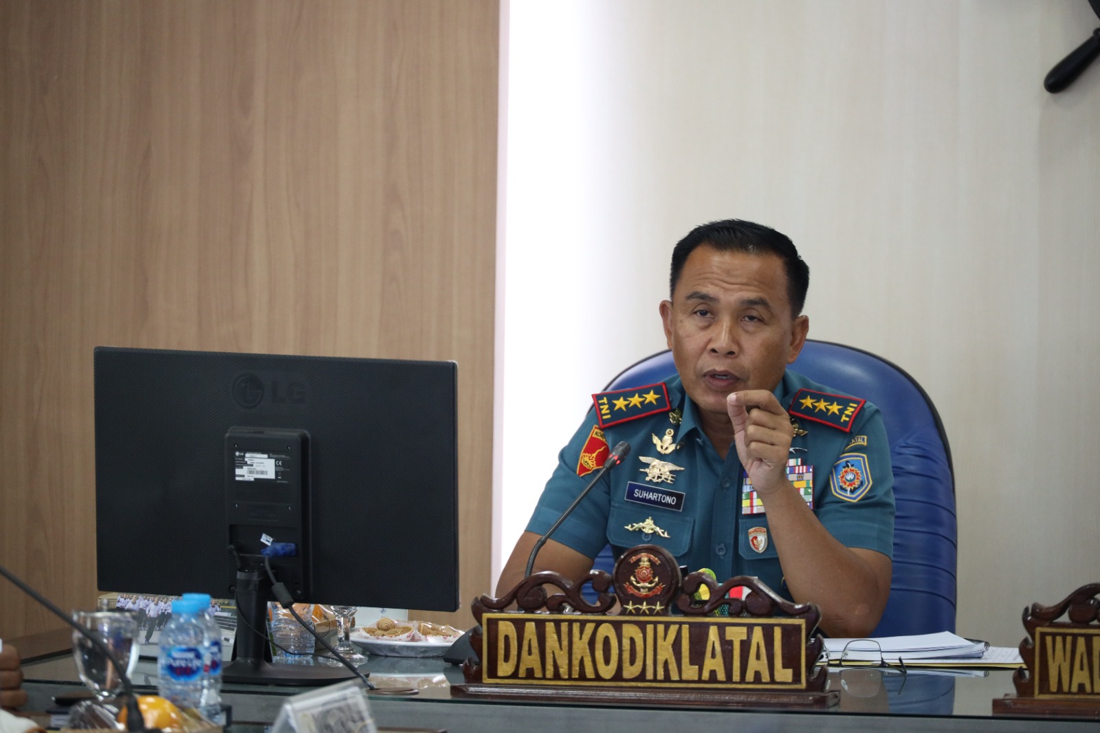 Komandan Komando Pembinaan Doktrin Pendidikan dan Latihan TNI AL (Dankodiklatal) Letnan Jenderal TNI Marinir Suhartono, memimpin paparan rencana tiga kegiatan Latihan Praktek (Lattek) siswa Kodiklatal. Paparan tersebut dilaksanakan di Ruang Rapat Komandan Kodiklatal di Bumimoro Surabaya, Senin (22/5/2023).
