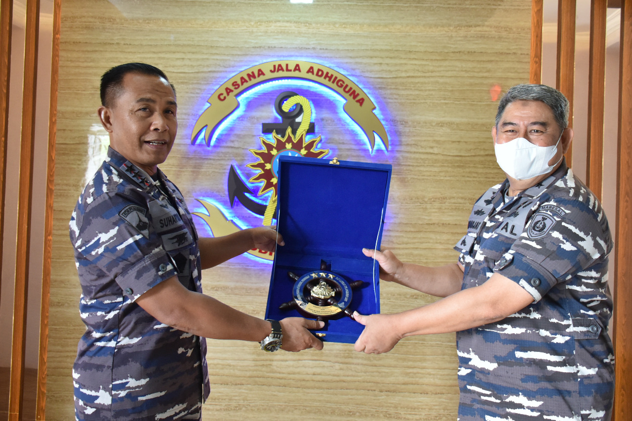 Komandan Komando Pembinaan Doktrin Pendidikan dan Latihan TNI AL (Dankodiklatal), Letnan Jenderal TNI (Mar) Suhartono menerima kunjungan silaturahmi Kepala Dinas Pembinaan Mental TNI AL (Kadisbintalal) Laksma TNI Daradjat Hidayat, di ruang kerja Dankodiklatal pada Jumat (27/5/2022).
