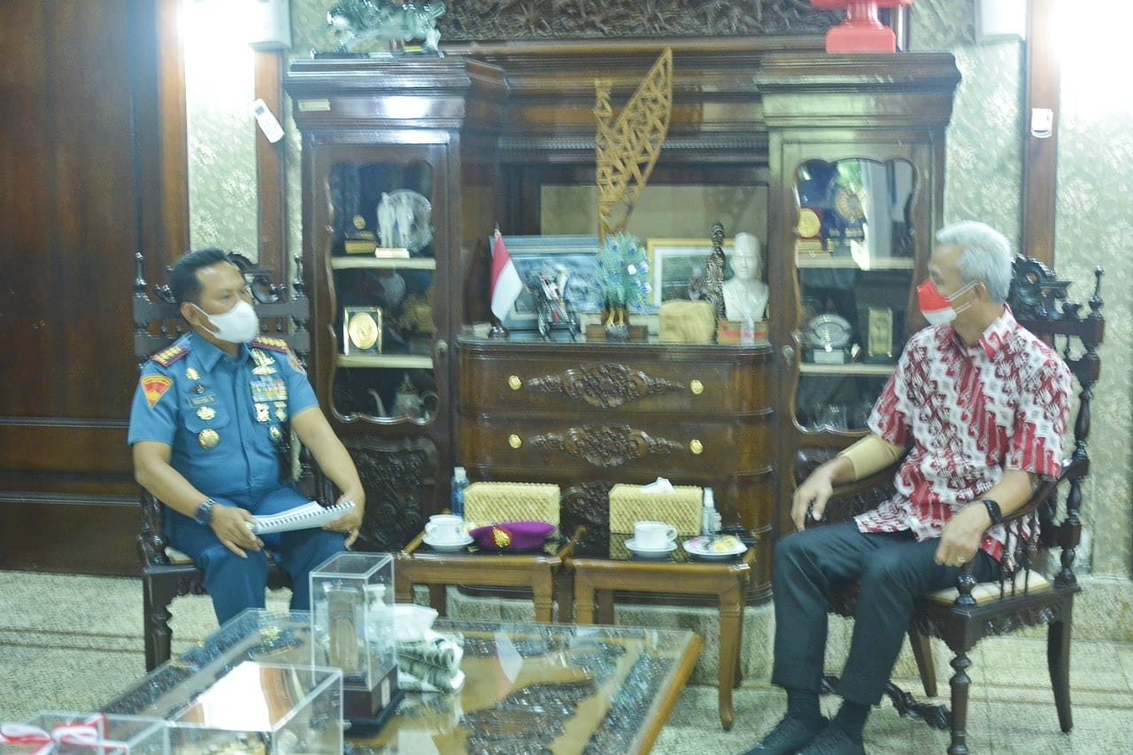 Komandan Pangkalan TNI Angkatan Laut (Danlanal) Semarang Kolonel Marinir Hariyono Masturi, M.Tr.Hanla., M.M., melaksanakan Courtesy Call (CC) kepada Gubernur Jawa Tengah H. Ganjar Pranowo, S.H., M.I.P., bertempat di Kediaman Gubernur Jawa Tengah “PURI GEDEH” Jl. Gubernur Budiono Kecamatan Gajah Mungkur Semarang. Senin (11/07/2022).