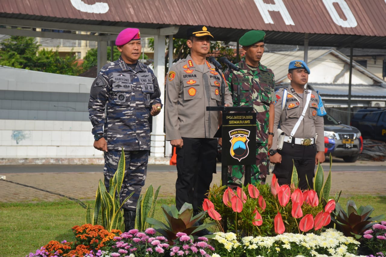Bertindak sebagai pimpinan apel Kapolrestabes Semarang Kombes Pol Irwan Anwar S.I.K., didampingi Komandan Lanal Semarang dan Kasdim 0733/Kota Semarang serta Komandan apel Kapolsek Genuk Kompol Risadrian Yudho Nugroho, dalam rangka Peningkatan Produktivitas Untuk Transformasi Ekonomi yang Inklusif dan Berkelanjutan Tingkat Kota Semarang, dengan tema “TNI-Polri Jawa Tengah Hadir Siap Mendukung Agenda Nasional, Internasional Tahun 2023 dan Pemilu 2024”.