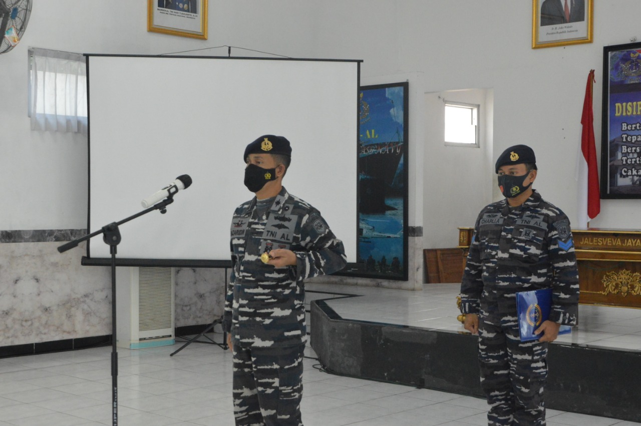 Komandan Pangkalan TNI Angkatan Laut (Danlanal) Semarang, Kolonel Laut (P) Nazarudin, CHRMP., menerima laporan korps kenaikan pangkat satu tingkat lebih tinggi dari pangkat sebelumnya di Gedung Mandalika Mako Lanal Semarang dan bertindak sebagai Danup Palaksa Lanal Semarang Mayor Laut (P) Tomosa Uskarlind L, M. Tr. Opsla. Jum’at (2/10/2021).