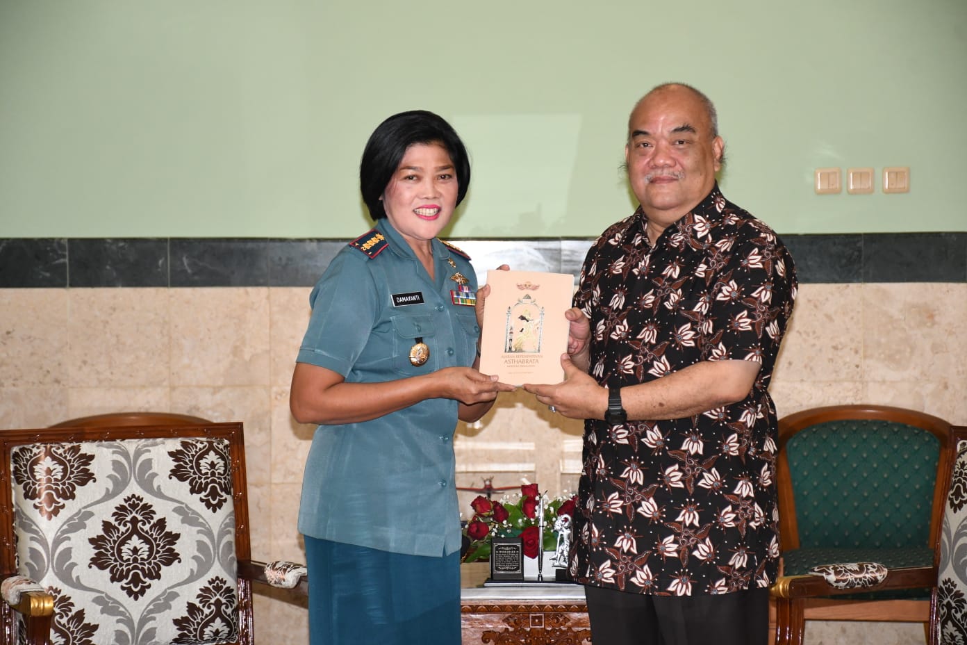 Komandan Pangkalan TNI AL (Danlanal) Yogyakarta Kolonel Laut (KH/W) Damayanti, S.H., M.M., CHRMP sempatkan bersilahturahmi ke Wakil Gubenur D.I.Yogyakarta KGPAA Paku Alam X di Pare Anom, Kompleks Kepatihan, Yogyakarta. Rabu, 12 April 2023.